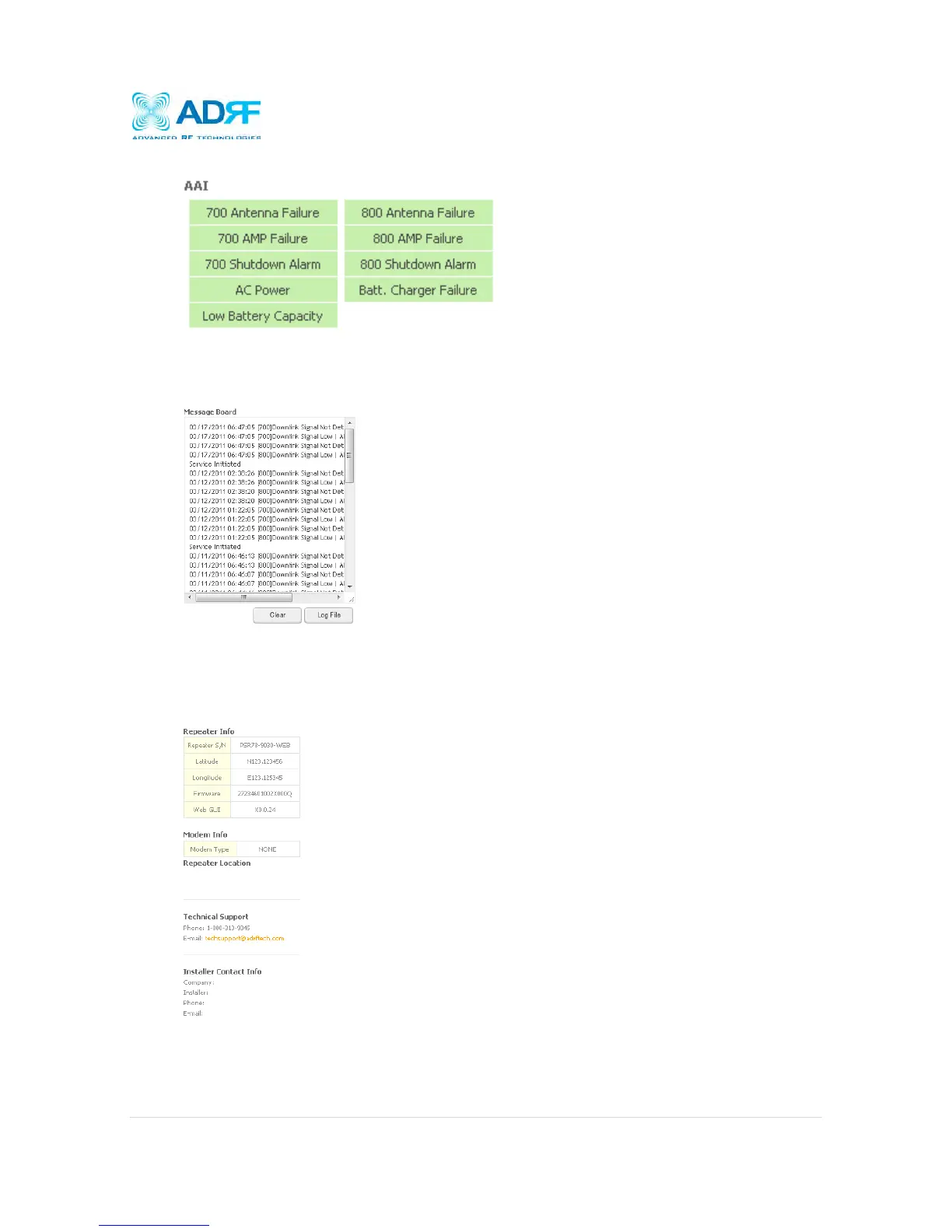 4.2.9 Repeater Info / Modem Info / Technical Support / Installer Contact Info