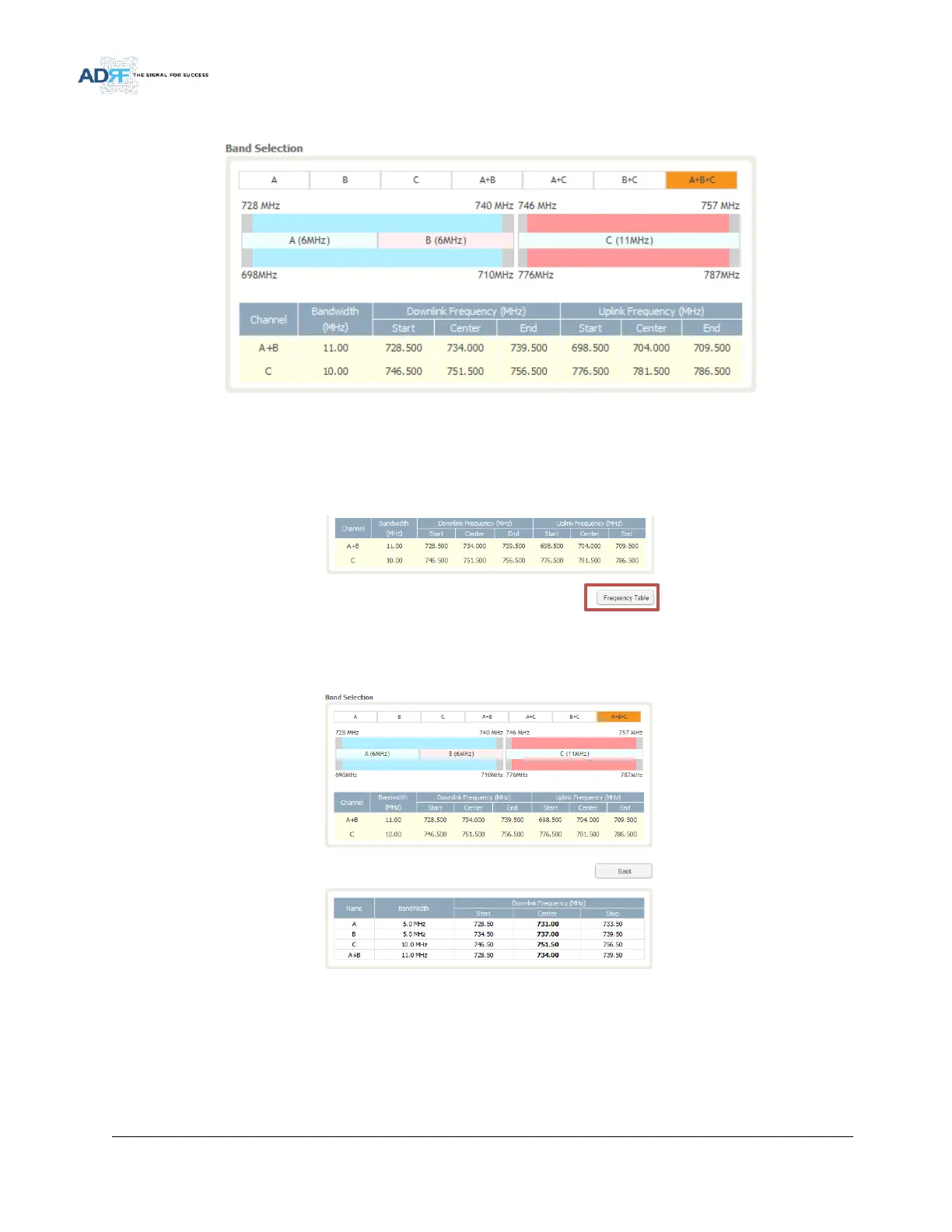 a reference to set the desired bands. Clicking on the Back button will take you back to the previous page.