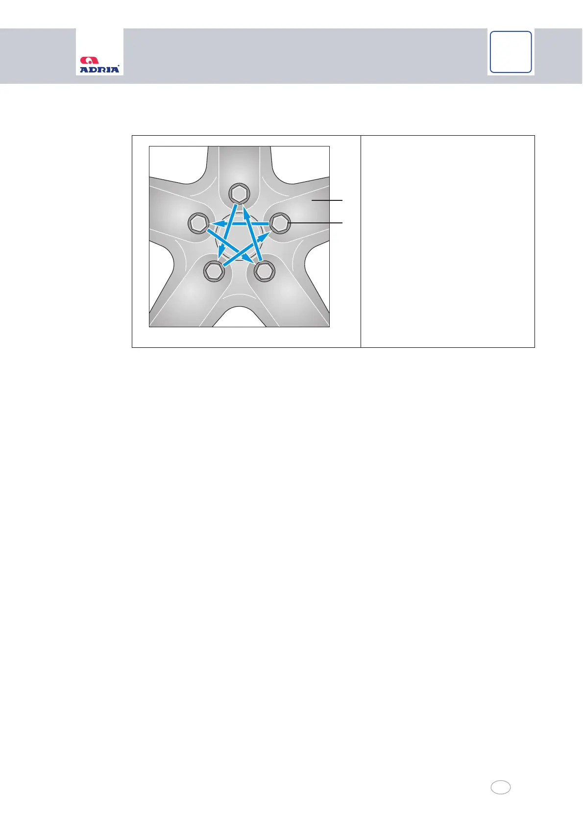 Tighten the wheel nuts or wheel bolts (Fig. 109/2) in the sequence 1 - 2 - 3 - 4 - 5.