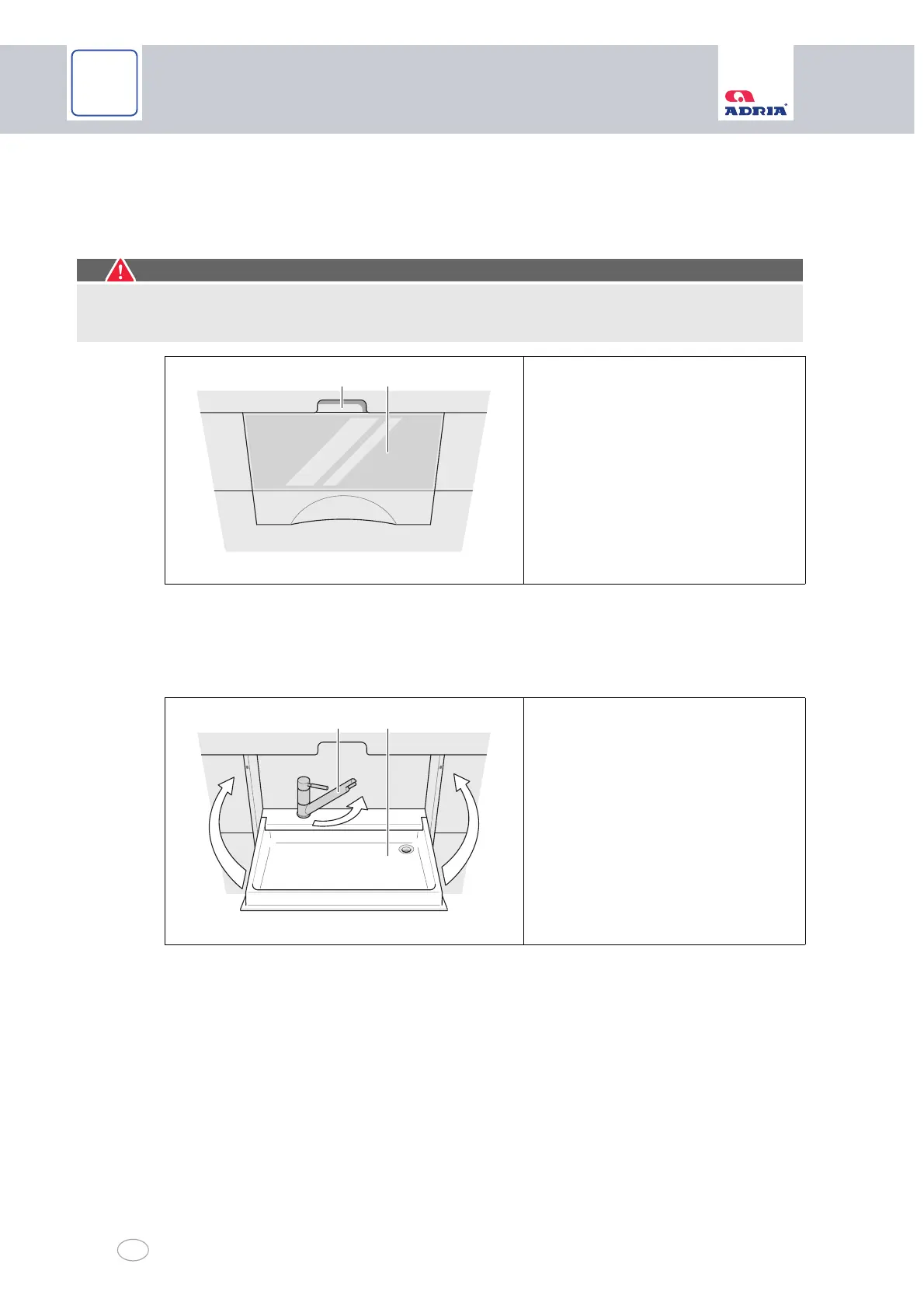 Fold the washbasin (Fig. 39/2) with mirror upwards and push it into the catch.