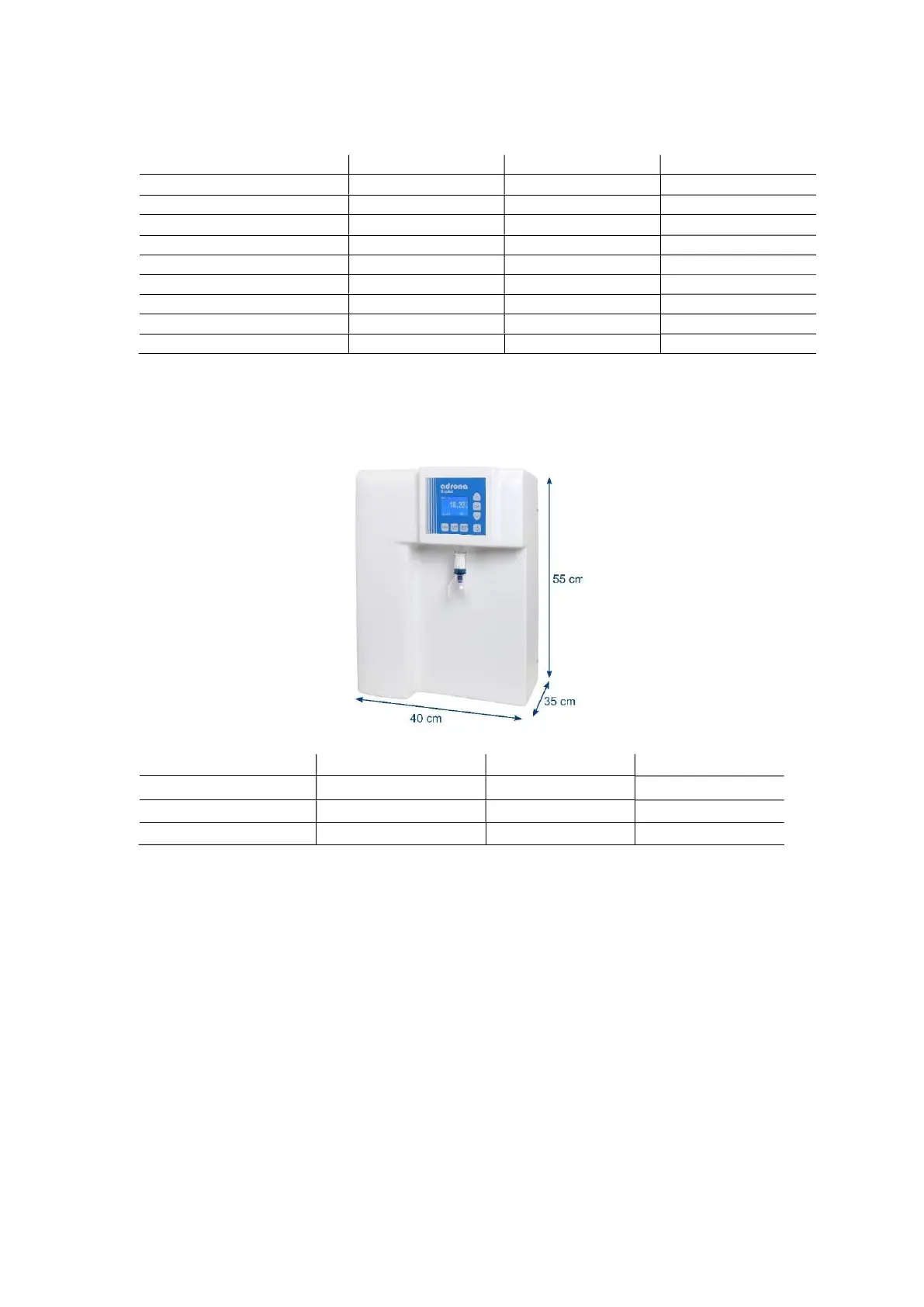 The water purification system is configured for 230 V ± 5%, 600 mA max.