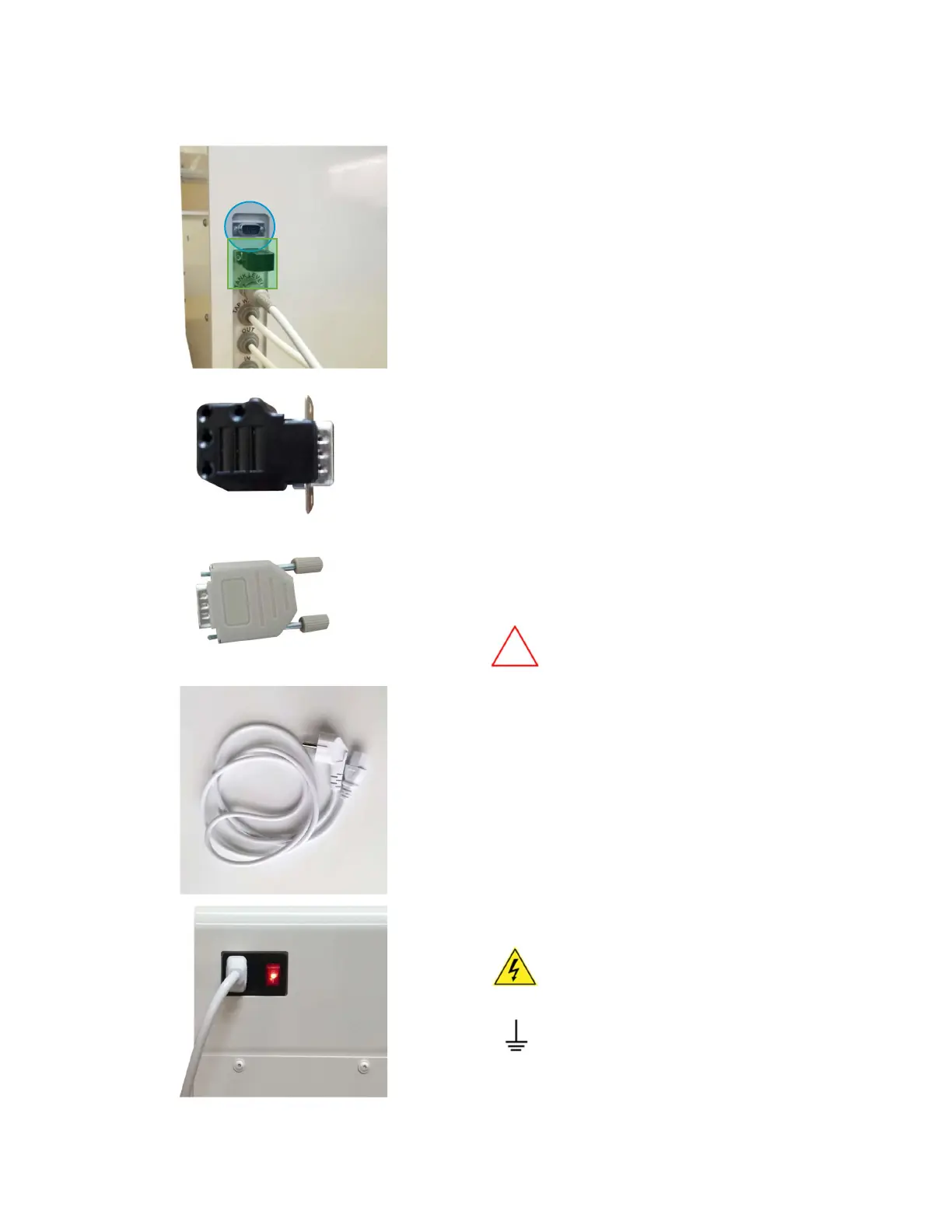 Connection to PC, validation port and power plug