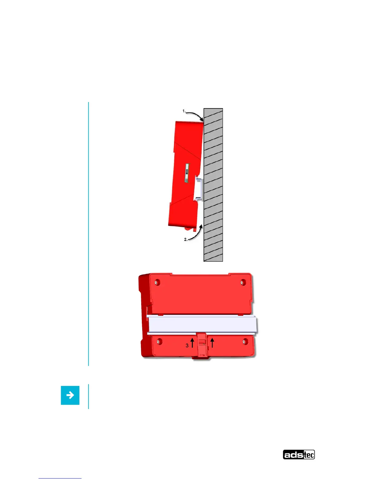 1. The Firewall must be placed obliquely up against the top of the top hat rail.