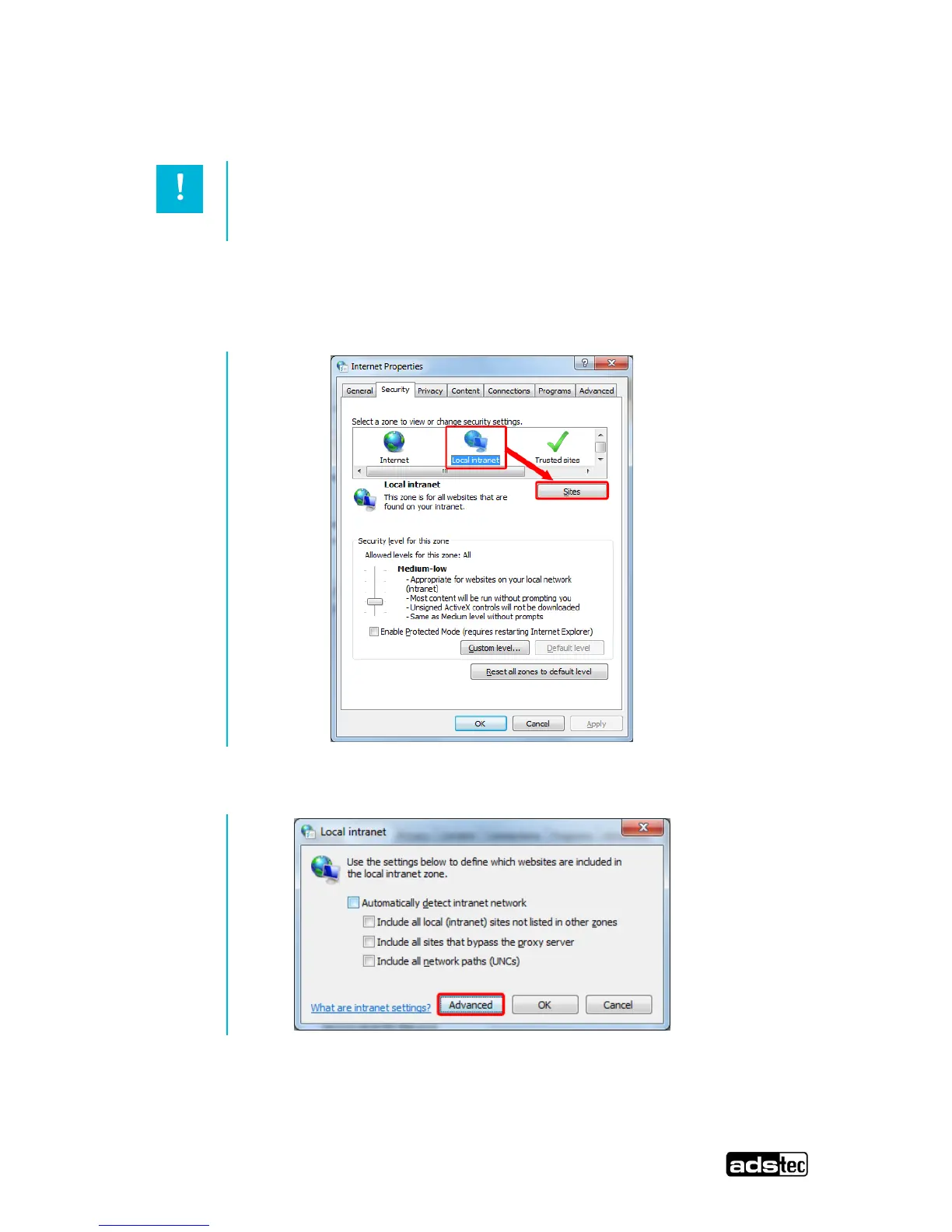 6.3 Settings for use with Internet Explorer 8