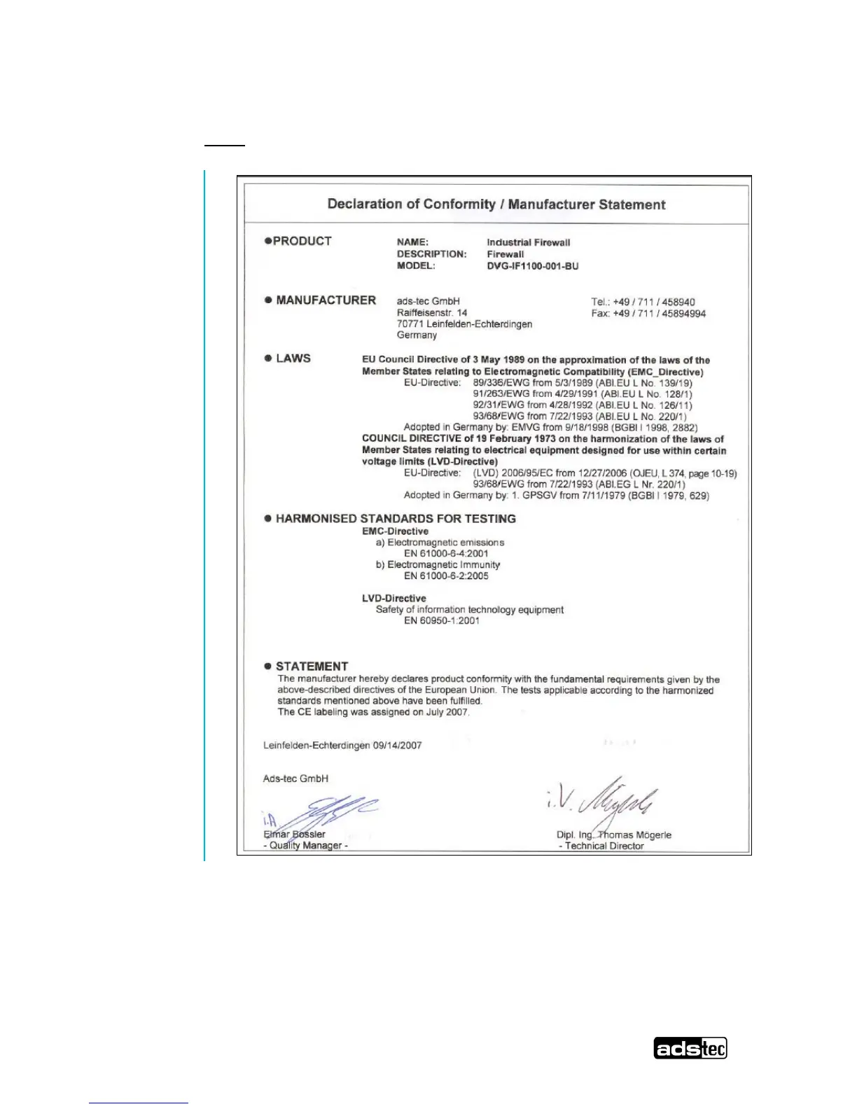 ADS-tec IF1100 - 9 Declaration of CE-Conformity