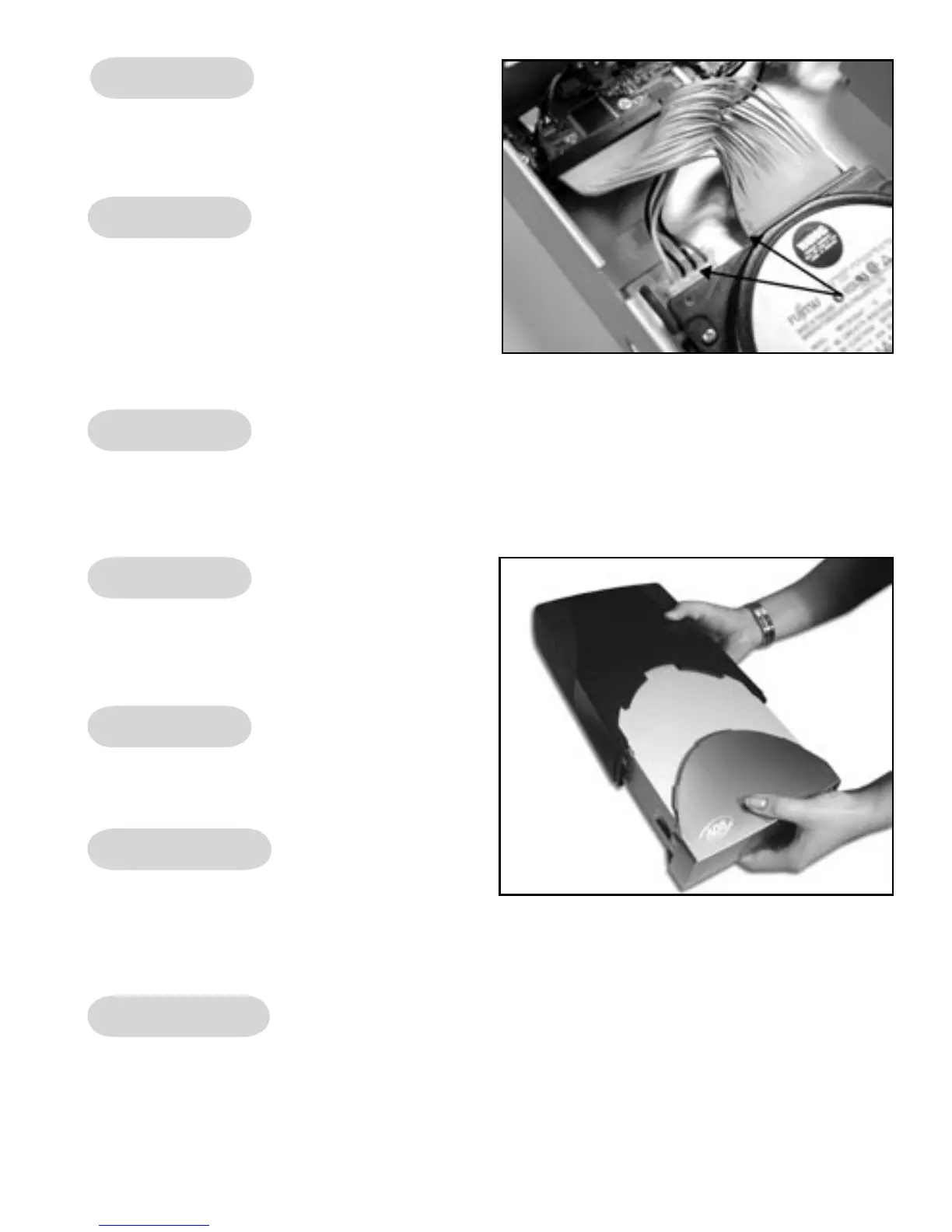 Une fois le disque dur bien arrimé, brancher le LED d’activité du disque dur sur celui-ci.