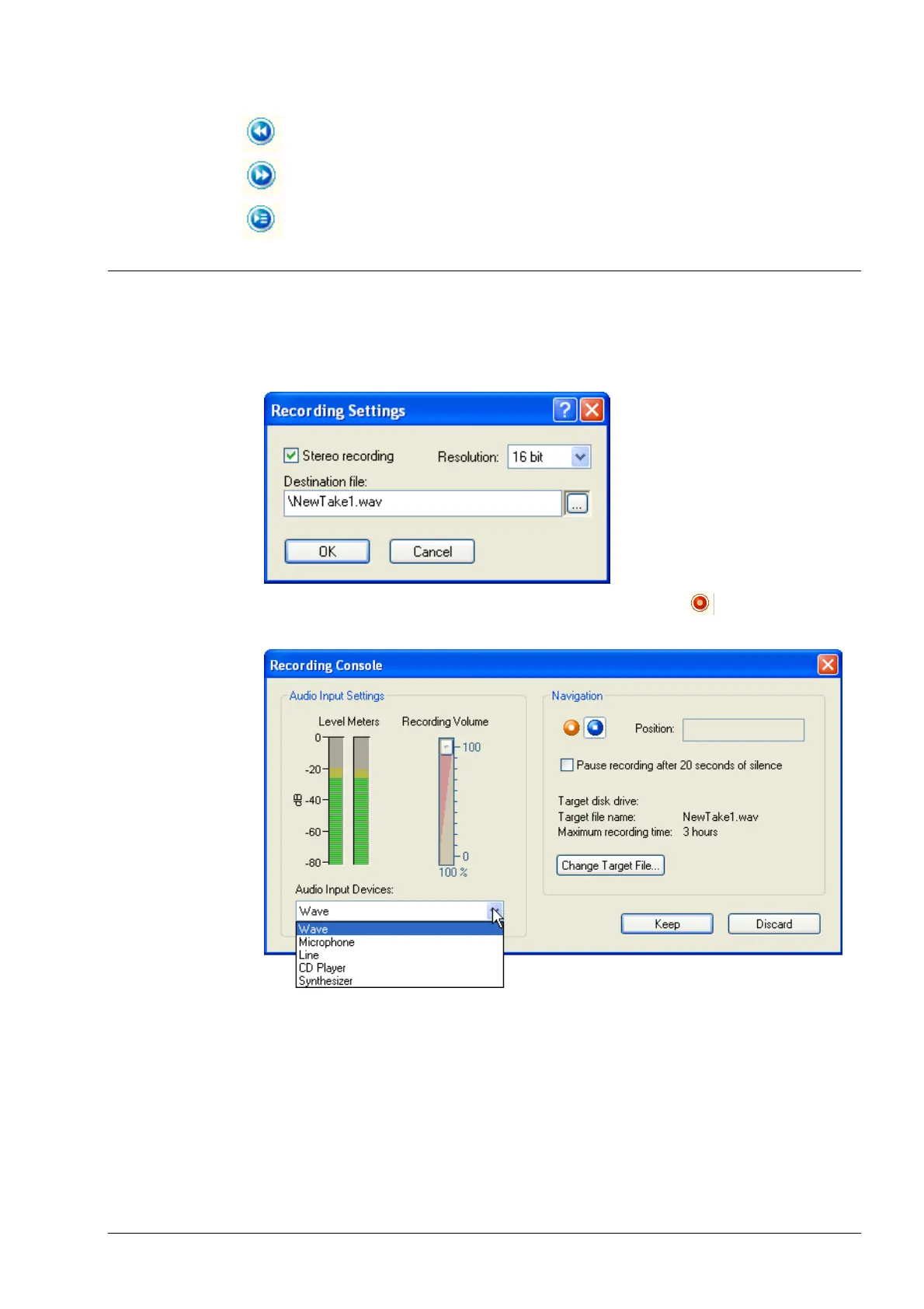 1. Choose 'Record' from the 'Audio' menu to start the recording console. Enter a