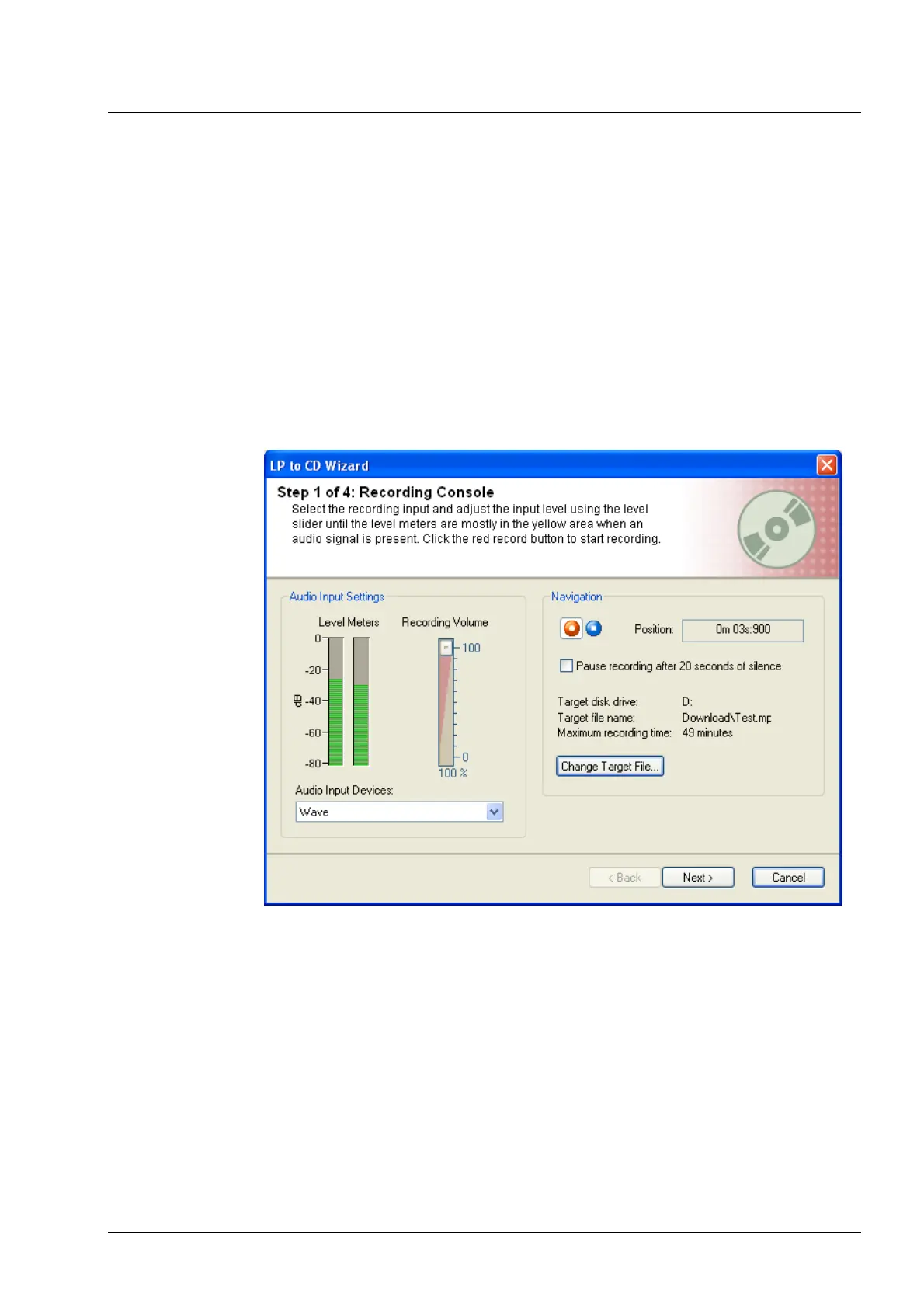 1. Choose 'Wizards' from the 'Tools' menu and select 'LP to CD Wizard' to start