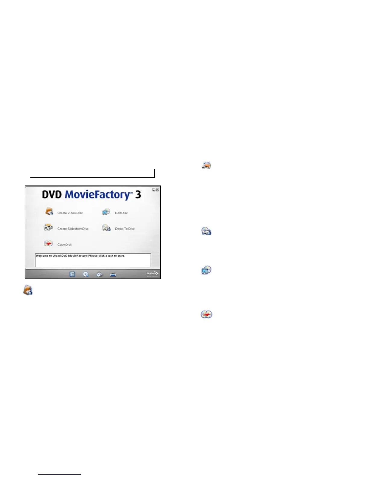 The DVD MovieFactory launcher serves as a control panel where you can nd the tasks you’ll need for