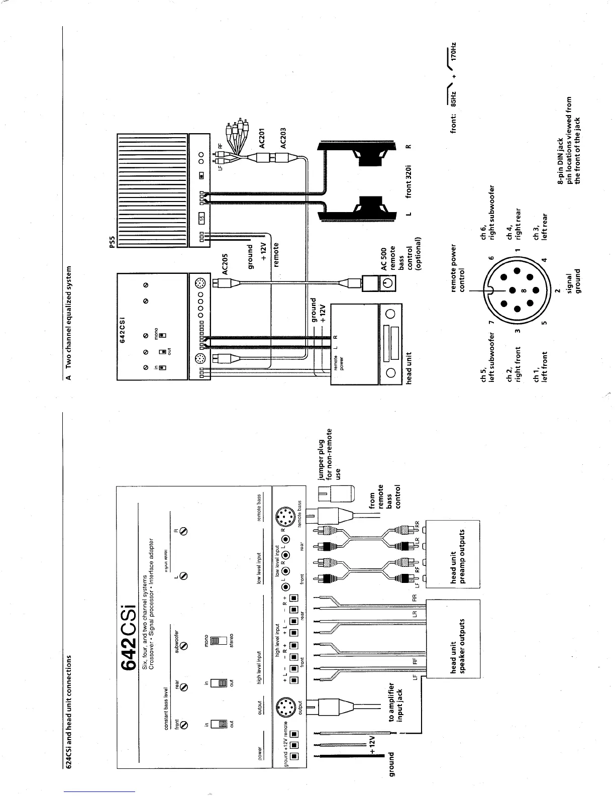 ADS 642CSi - 624 CSi and Head Unit Connections; Two Channel Equalized System Diagram