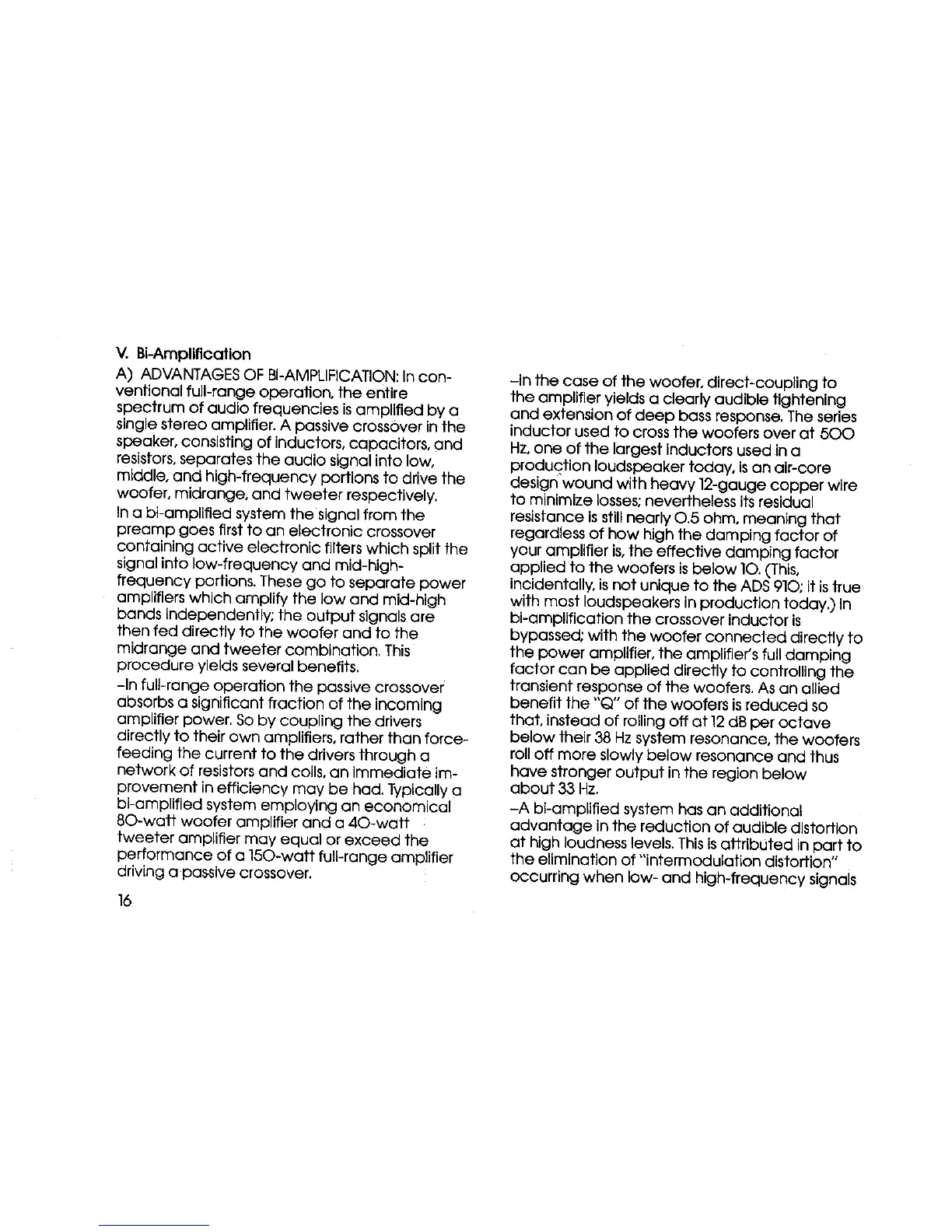 ADS 910 - Bi-Amplification; Advantages, Hookup, and Adjustments