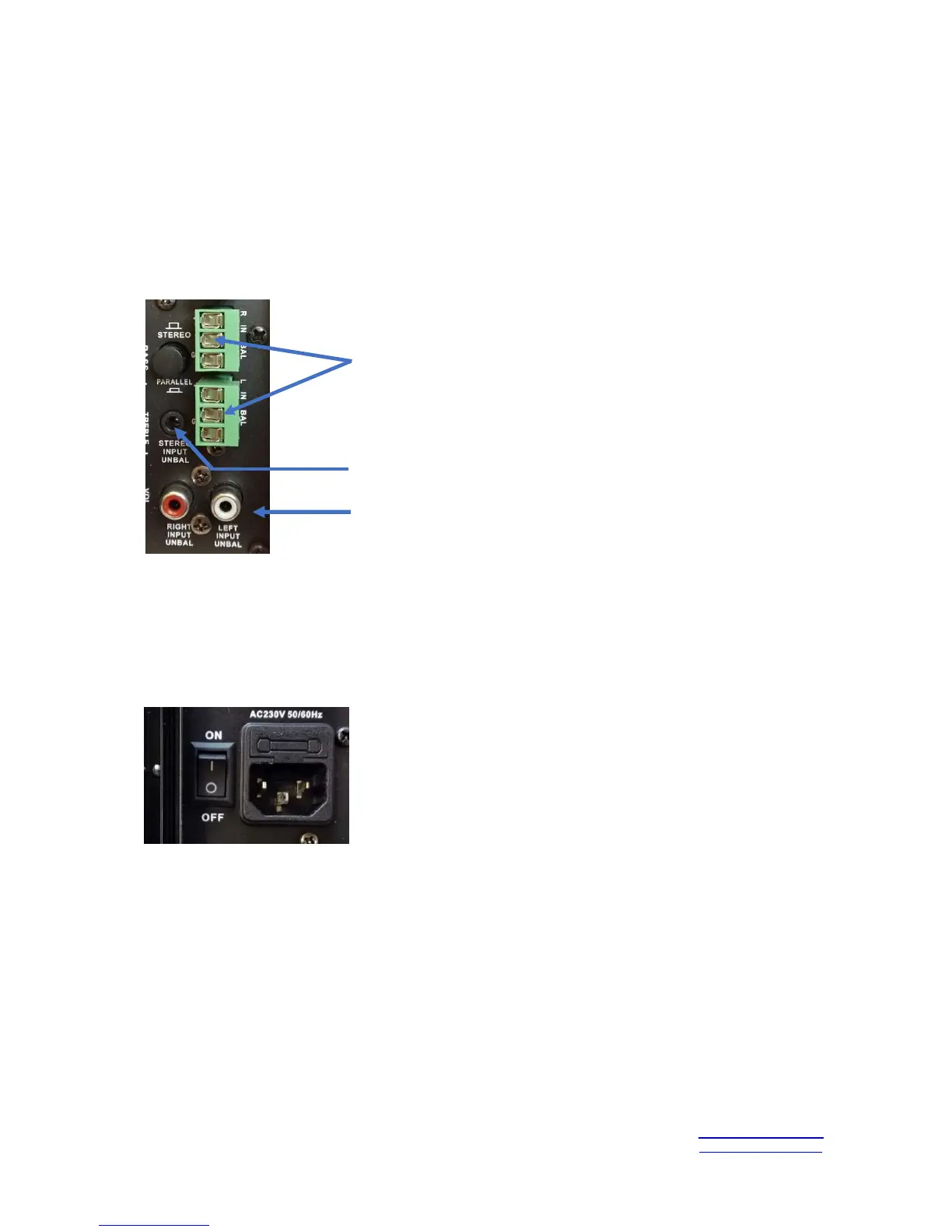 3. Connect kettle plug to the left powered speaker mains input socket, connect