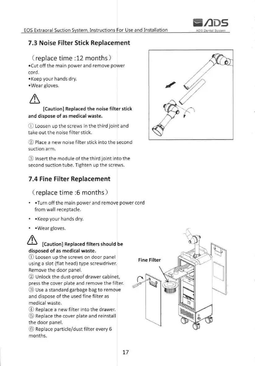 ADS EOS - Filter and Noise Stick Replacement; Noise Filter Stick Replacement; Fine Filter Replacement