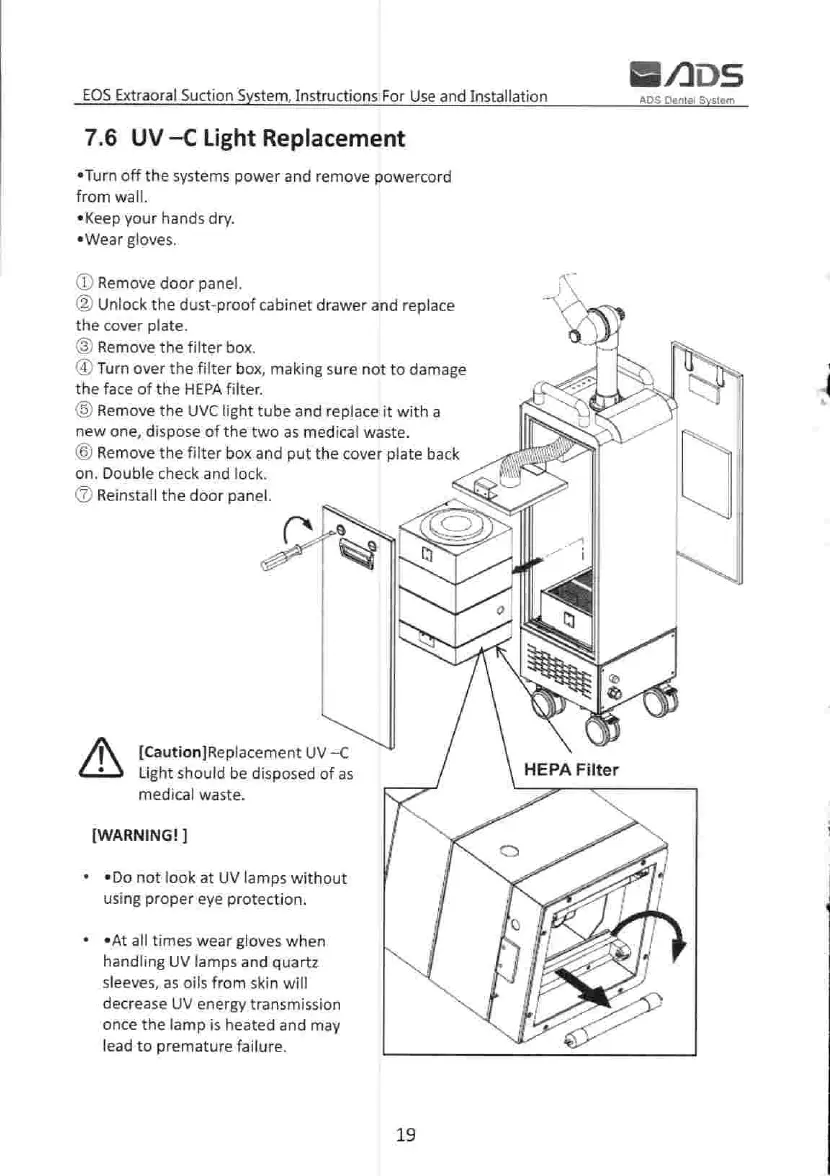 ADS EOS - UV-C Light System Maintenance; UV-C Light Tube Replacement