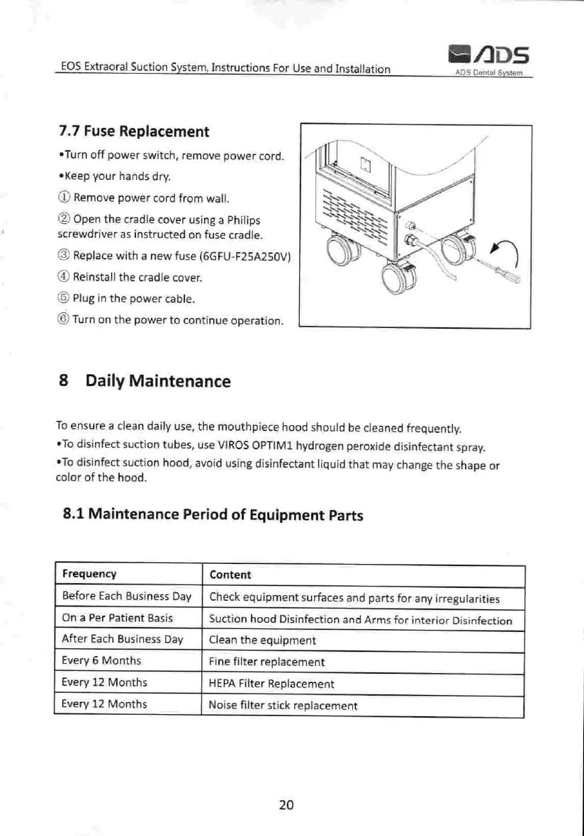 ADS EOS - Fuse and Daily Maintenance; Fuse Replacement; Daily Cleaning and Maintenance Schedule