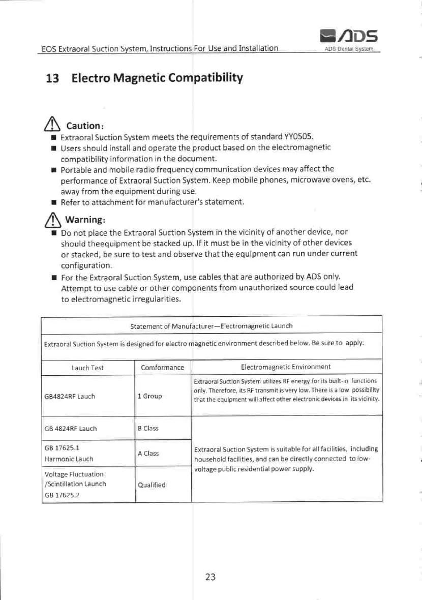 ADS EOS - Electromagnetic Compatibility (EMC); EMC Statement and Precautions; Electromagnetic Launch Testing