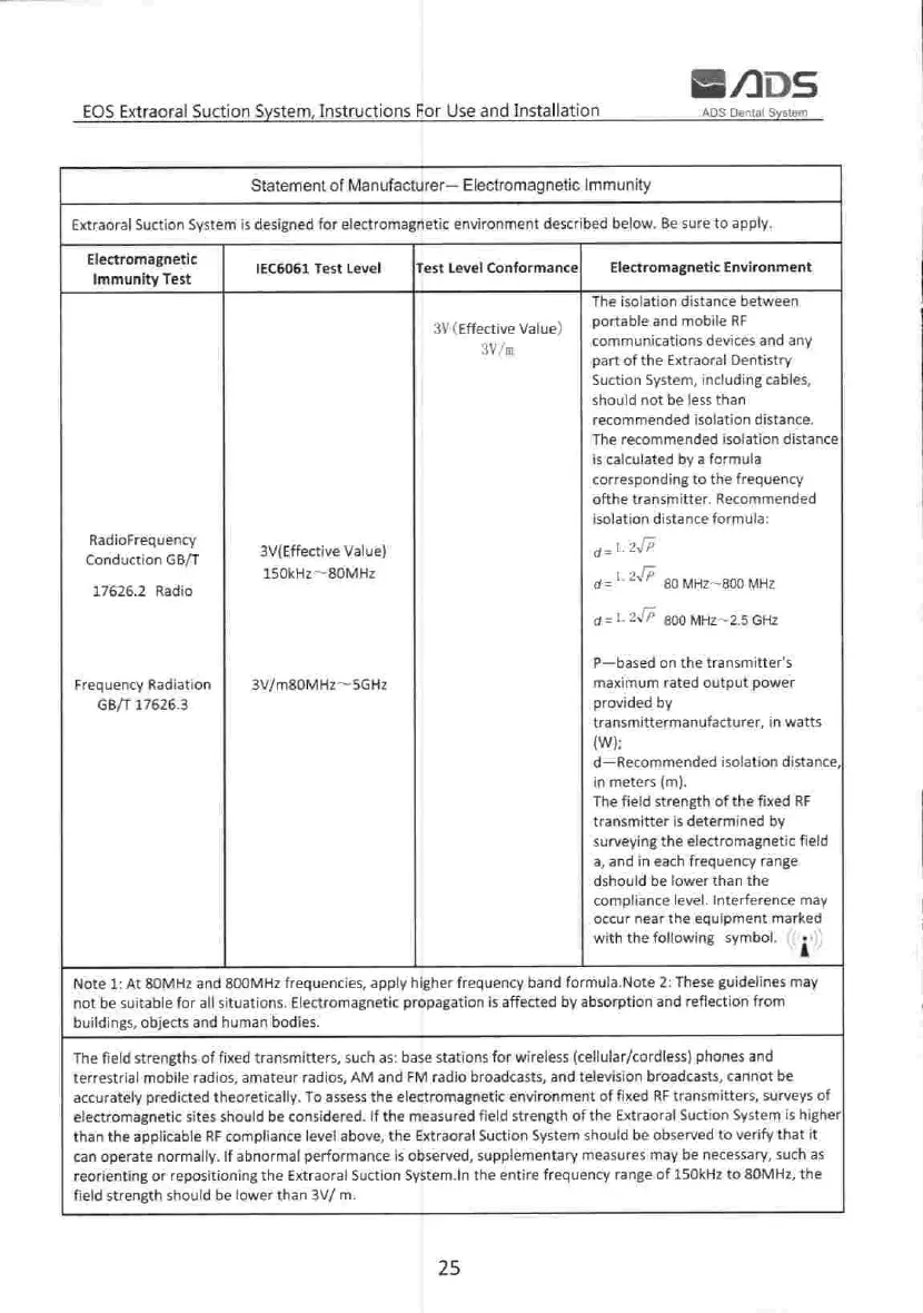 ADS EOS - Electromagnetic Immunity Standards; Immunity Test Conformance