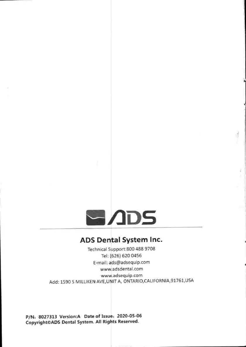 ADS EOS - Company Contact and Support Information; ADS Dental System Support Channels