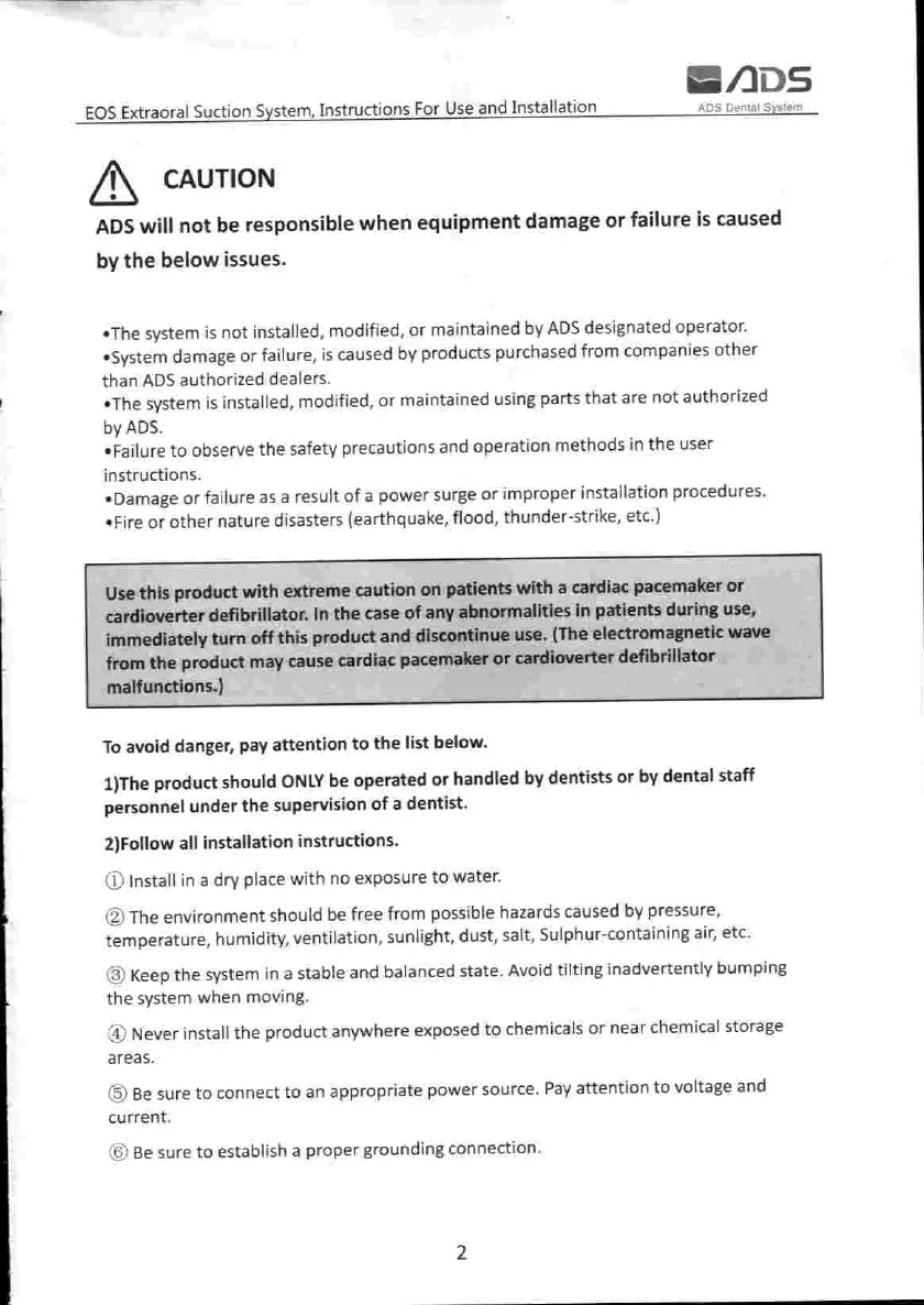 ADS EOS - Operational Safety and Cautions; Liability and Cautionary Notes; Patient Safety with Medical Devices