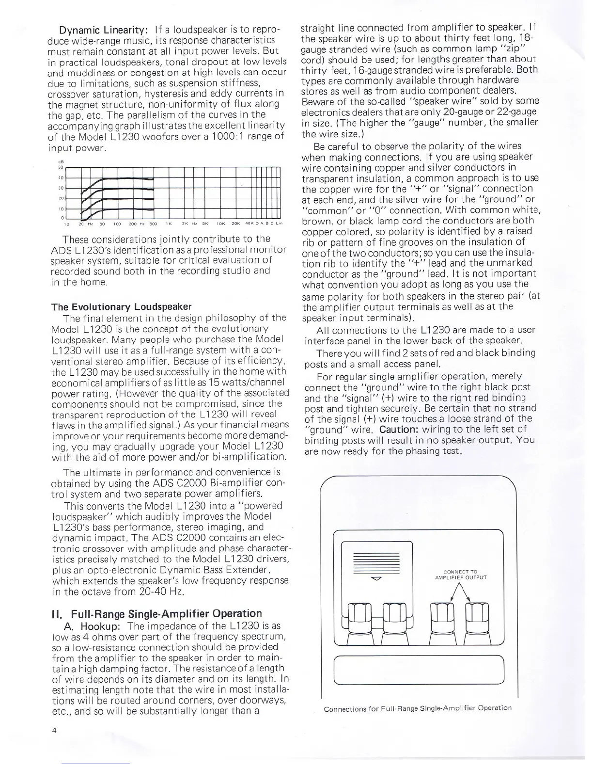 ADS L420 - Full-Range Single-Amplifier Operation; Hookup Procedures; Dynamic Linearity in Loudspeakers; The Evolutionary Loudspeaker Concept
