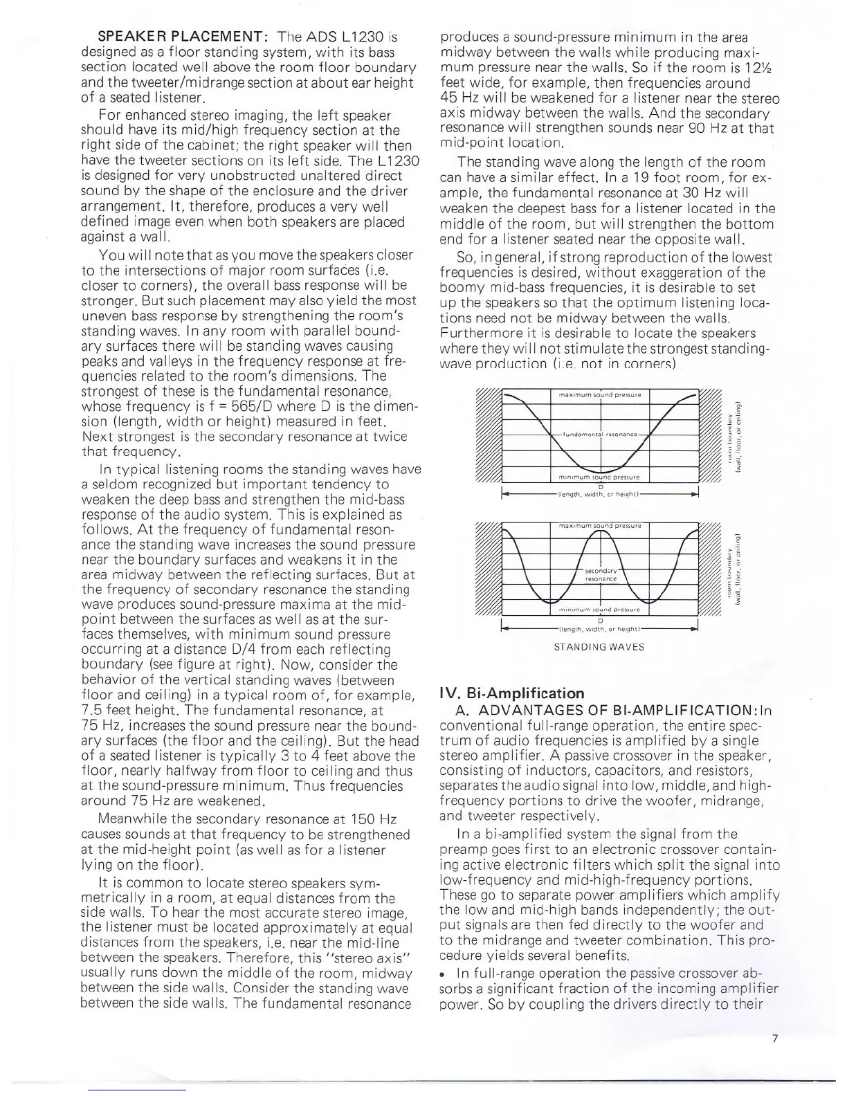 ADS L420 - Optimizing Speaker Placement; Bi-Amplification System Benefits; Advantages of Bi-Amplification