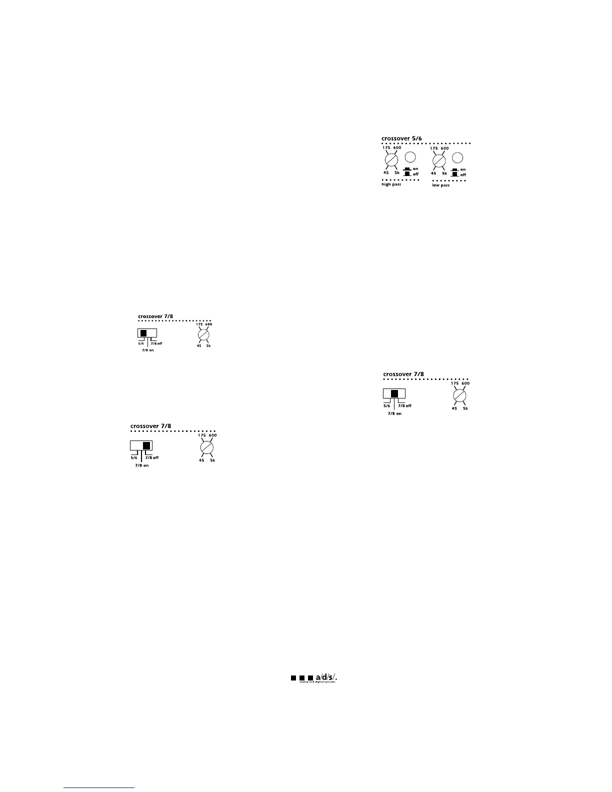 xover control 7/8 - The crossover selection for channels 7&8 has three possibilities: