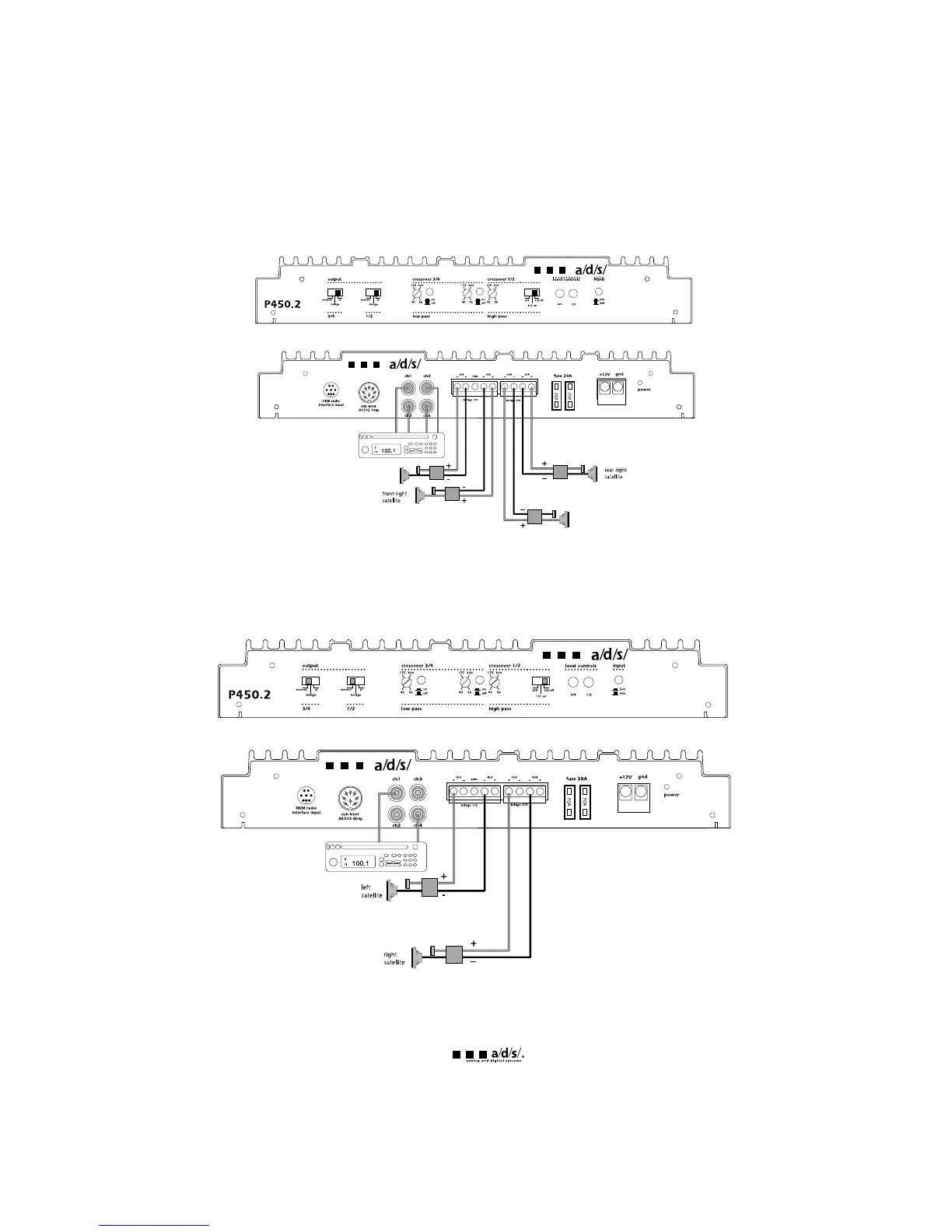 ADS P850.2 - P450.2 System Diagrams; P450.2 System 1: 4-Channel Mode; P450.2 System 2: 2-Channel Bridged Mode