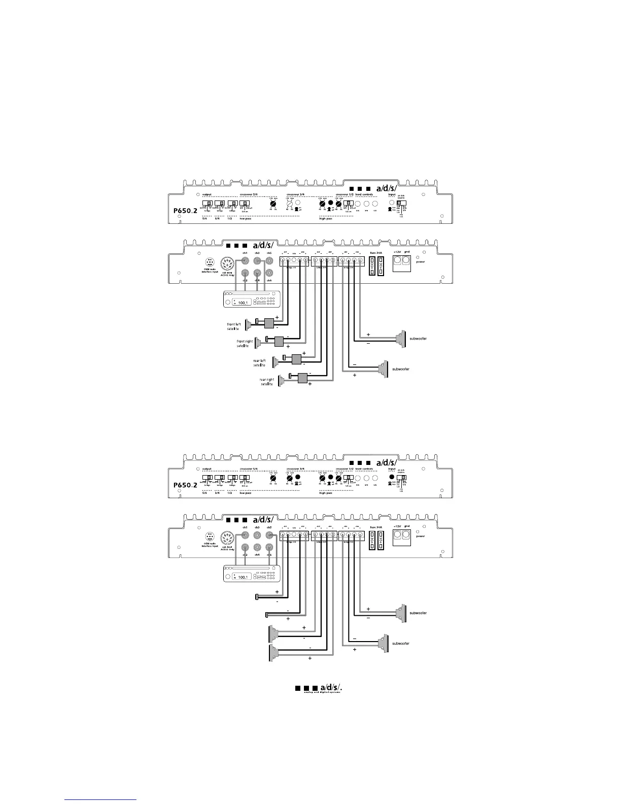 System 1 - P650.2 used in 6-channel mode. Channels 1/2 are high-passed for front speakers. Channels
