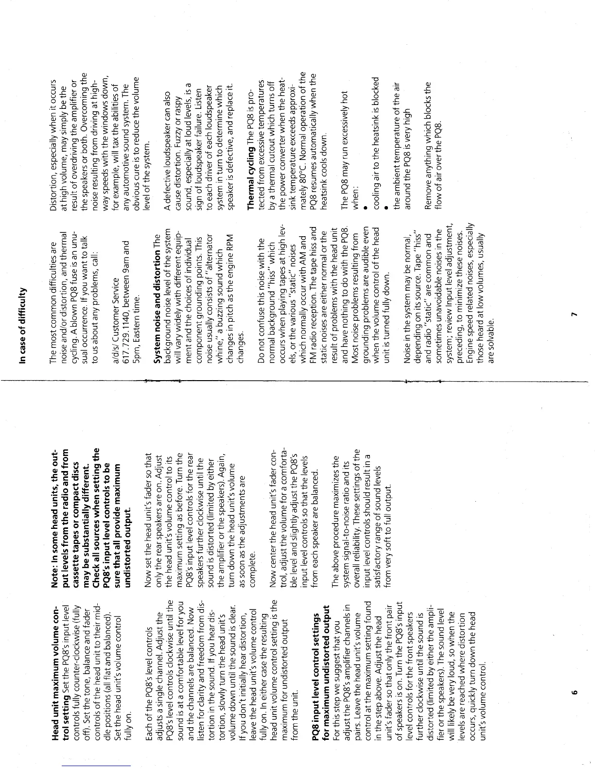 ADS PQ8 - Head Unit Maximum Volume Control Setting; PQ8 Input Level Control Settings; In Case of Difficulty