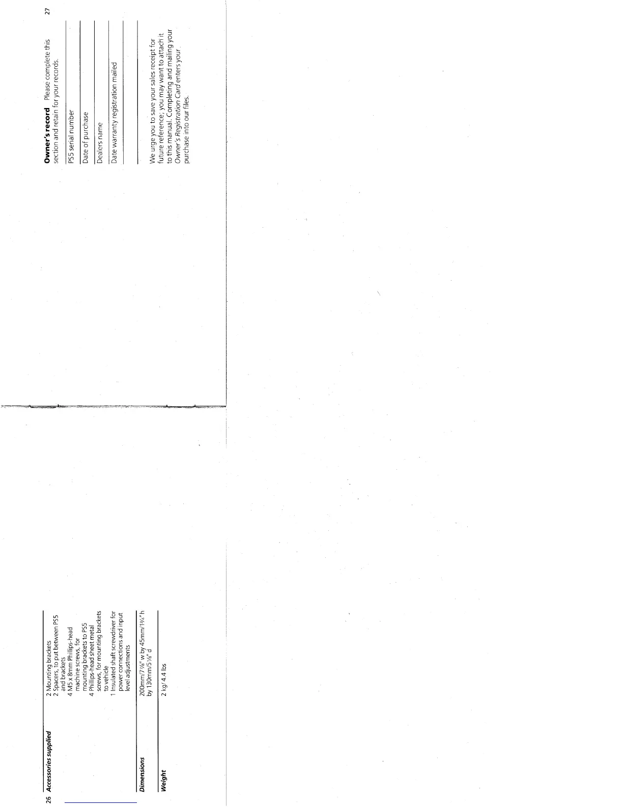 ADS PS5 - Owners Record and Details; Included Accessories List; Product Dimensions and Weight; Warranty Registration Information