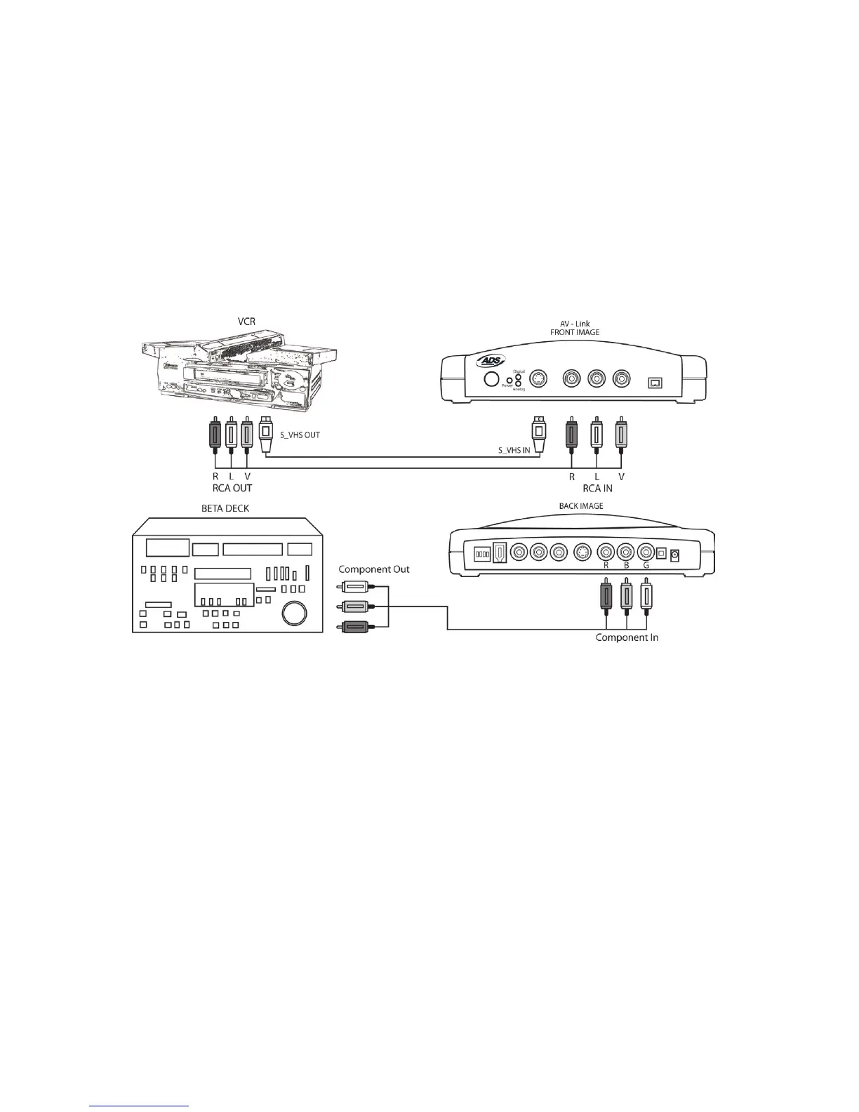 to connect between your video device and PYRO A/V Link. Component