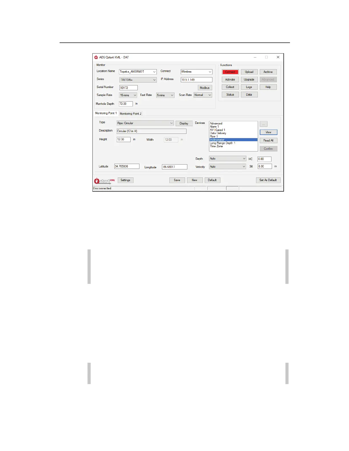 parameters for the current location on the ADS Qstart