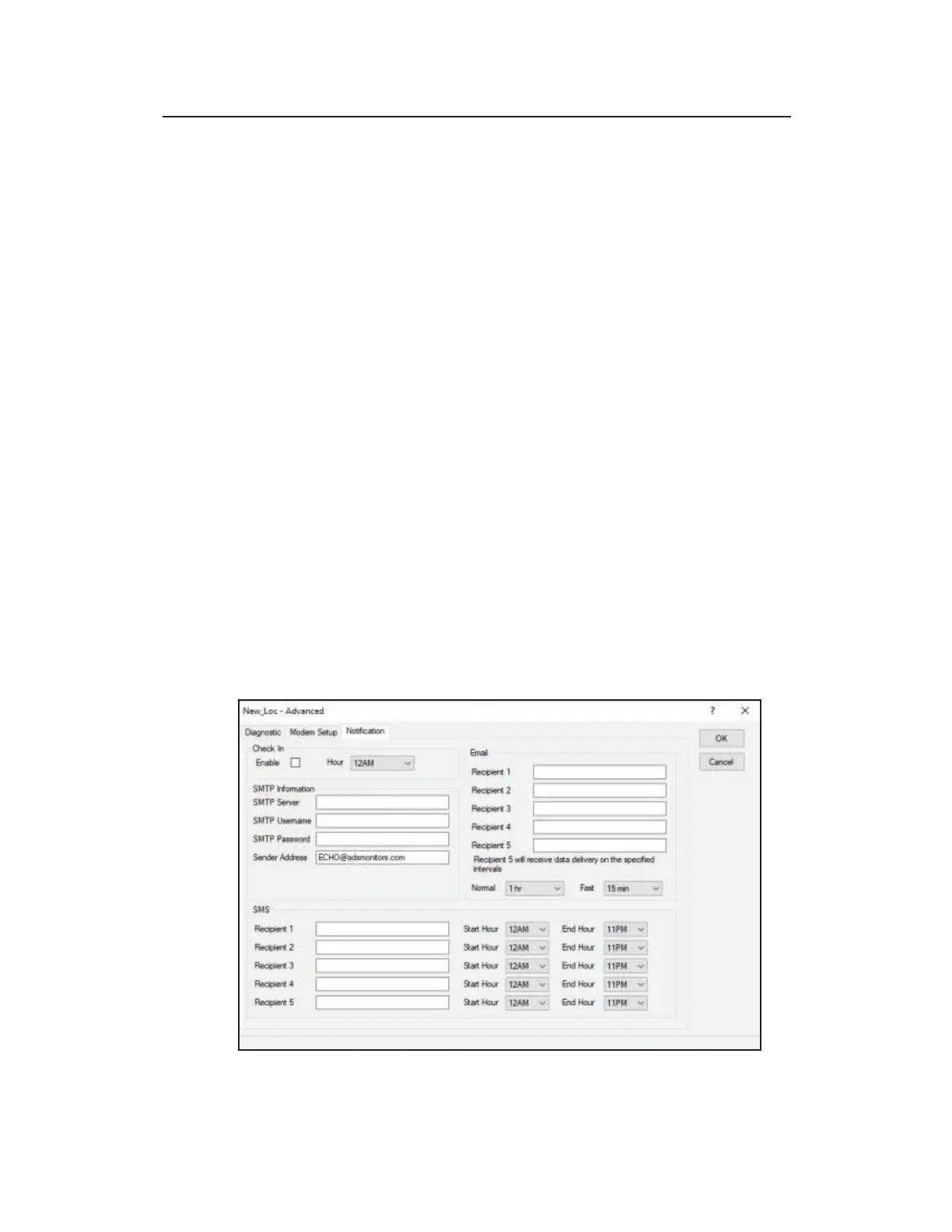 Notification tab allows users to configure up to five (5) email and