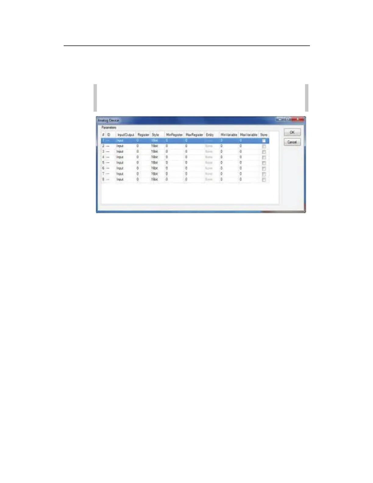 Analog Device properties dialog