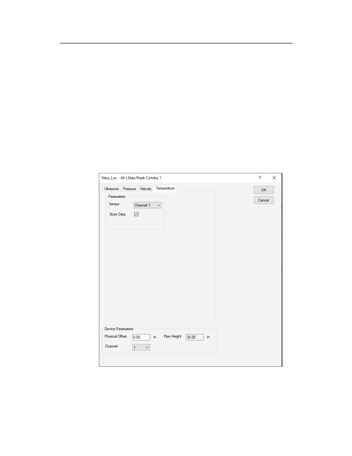 Edit AV|Gated 1 dialog displaying the Temperature tab