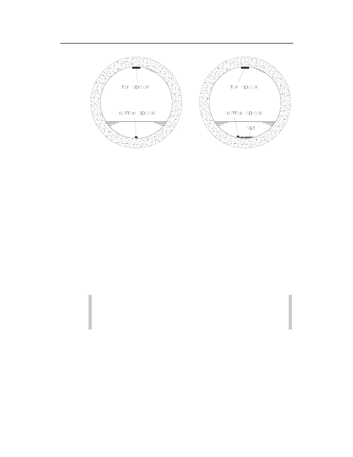 (Left) Proper orientation of the ring with the sensors in the pipe without silt
