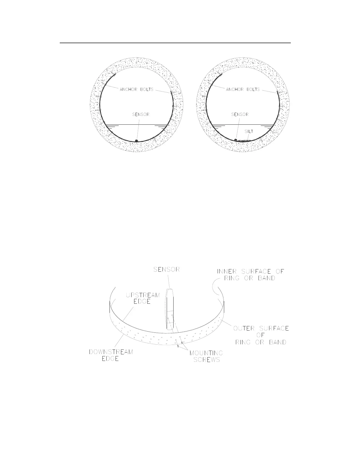 nose) of the sensor is facing the upstream edge of the ring