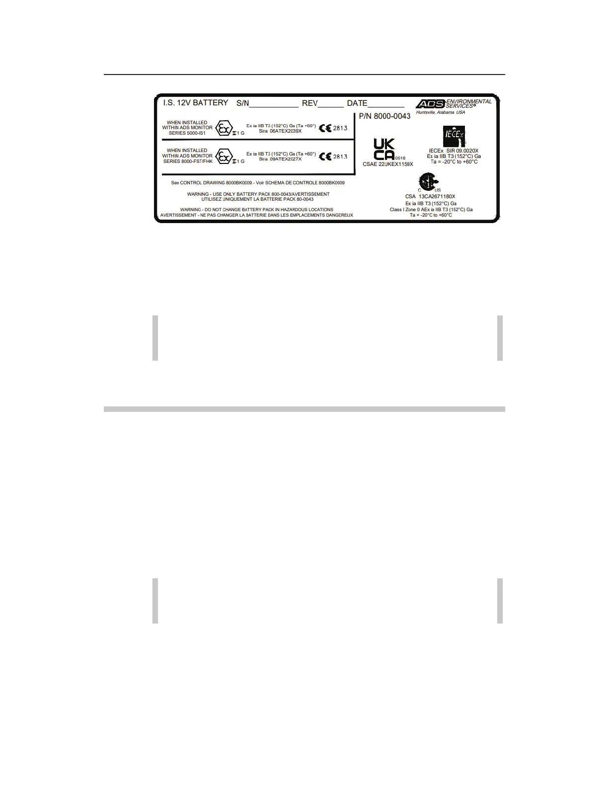 Battery ATEX, IECEx, CSA, UKCA Certification Label