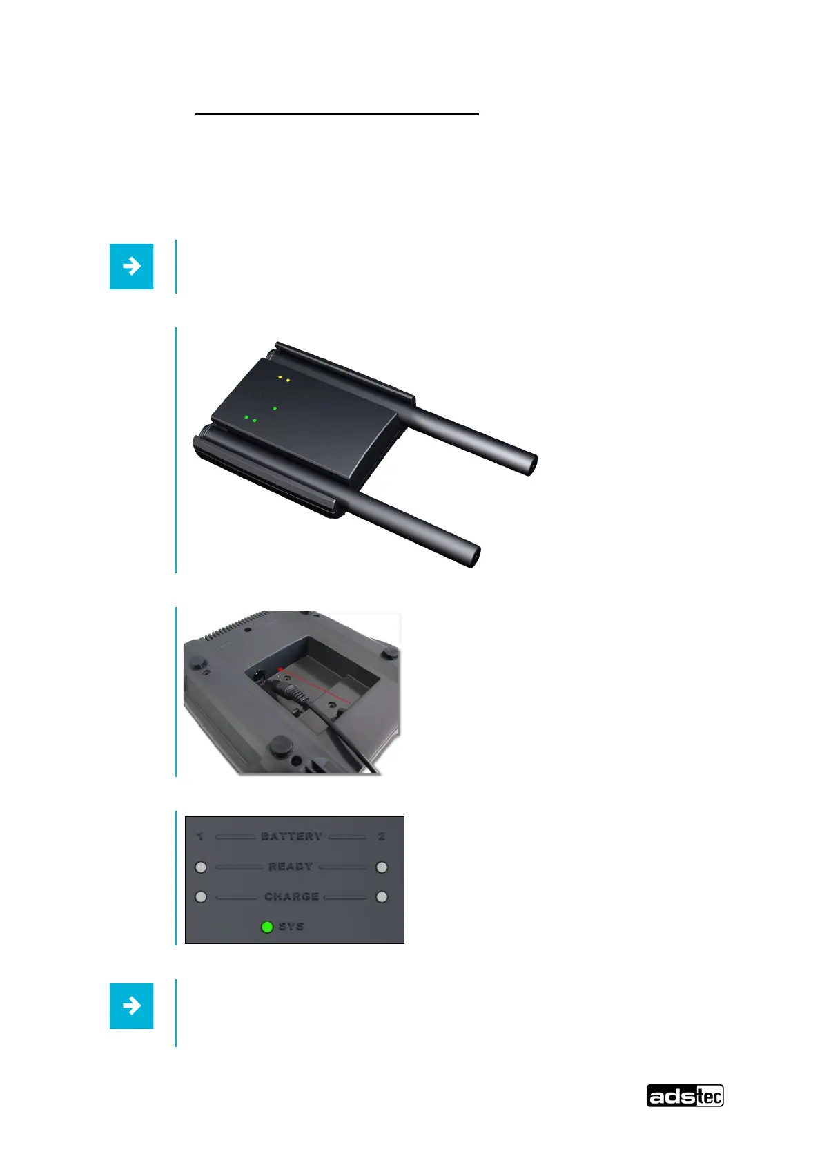 Before starting up the battery charging station, a 20 VDC power adapter must