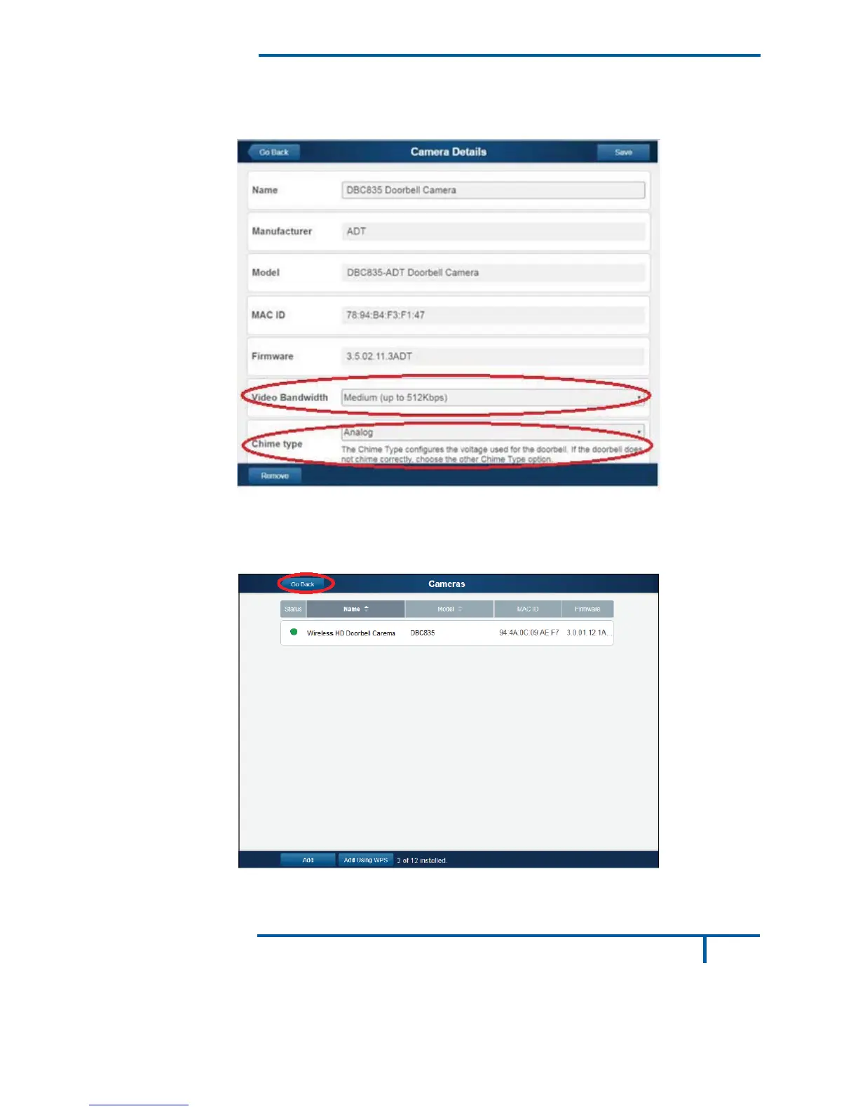 If the doorbell camera is enrolled, the Camera Details screen will be