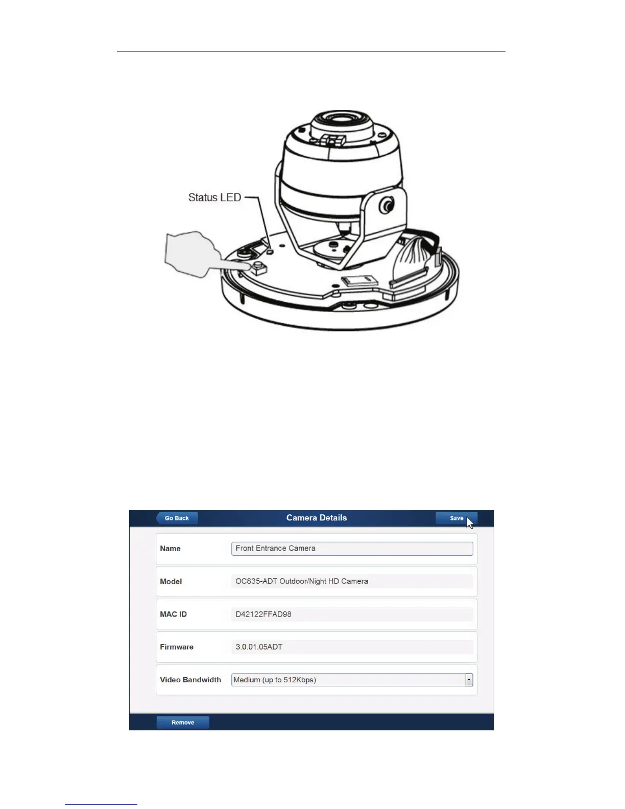 11. When the Camera Details screen appears, showing that the camera
