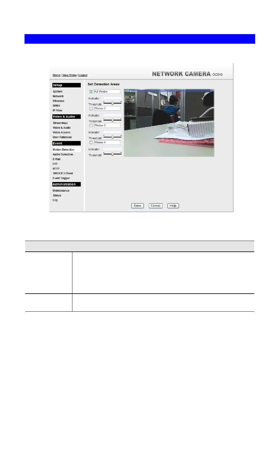 This screen is displayed when the Motion Detection option on the Event menu is clicked.