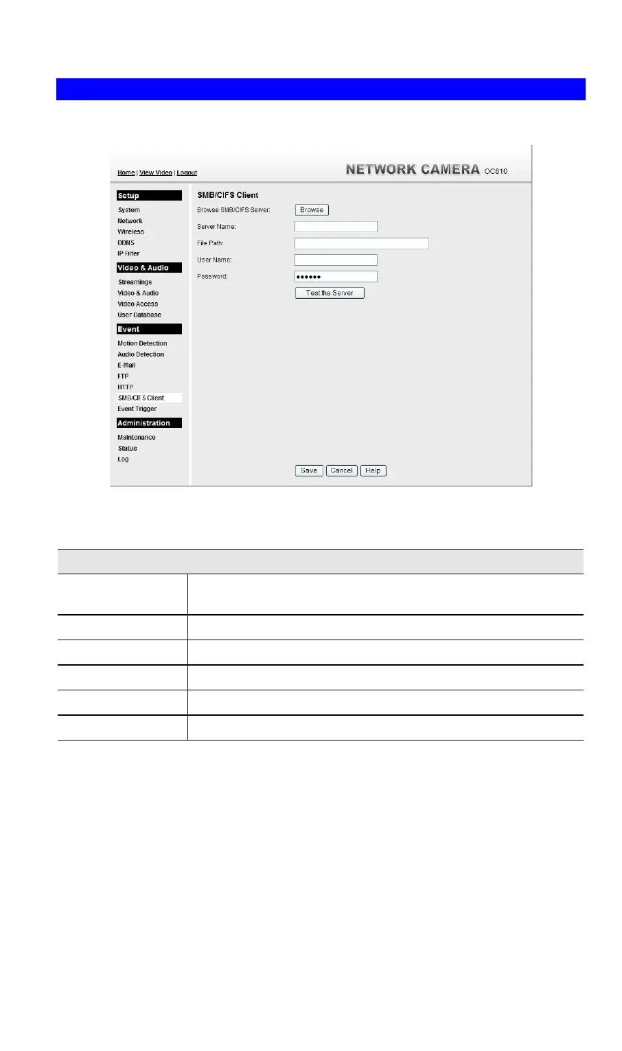 This screen is displayed when the SMB/CIFS Client option on the Event menu is clicked.