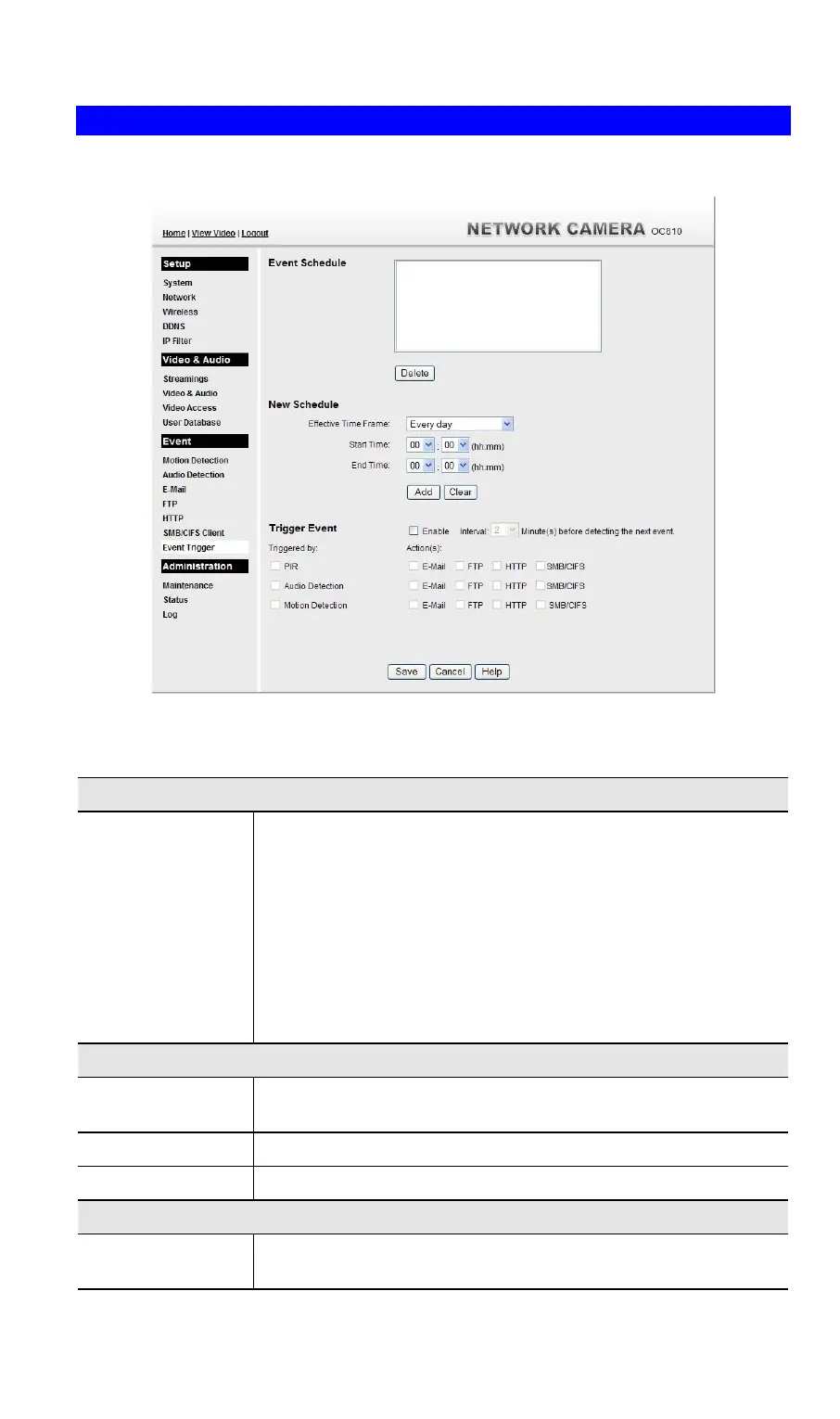 Figure 43: Event Trigger Screen