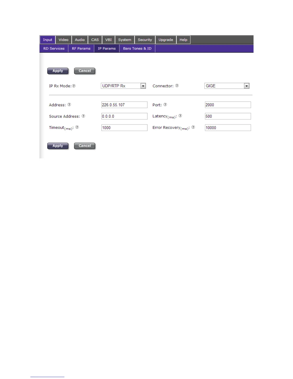 To receive a unicast (TCP/UDP/RTP/SMPTE2022) stream, enter 0.0.0.0 in the ‘Address’ field.