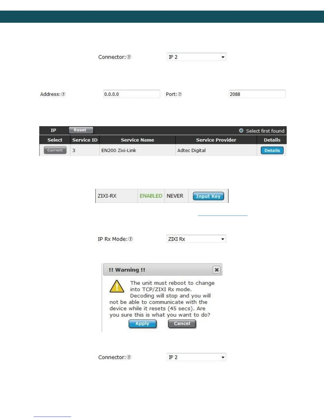 Once the unit is back up, select the correct Connector for the IP input, the default is IP2.