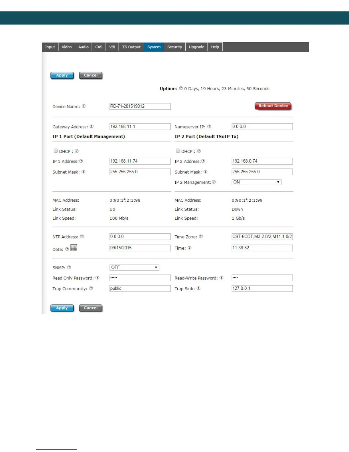 Device Name - Device name is the host name for the unit. When a unit is manufactured, it