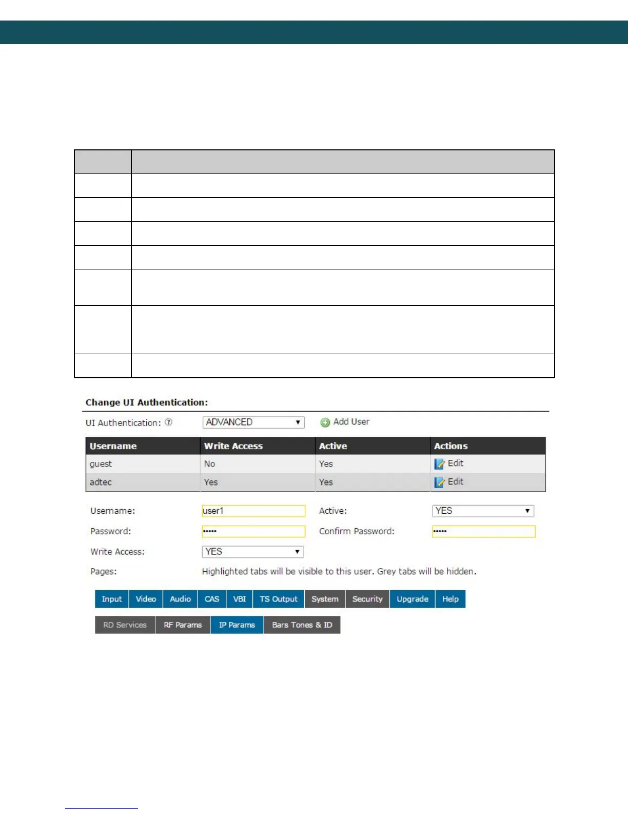 User administration is possible for all users with Write Access to the Security page. The ‘adtec’