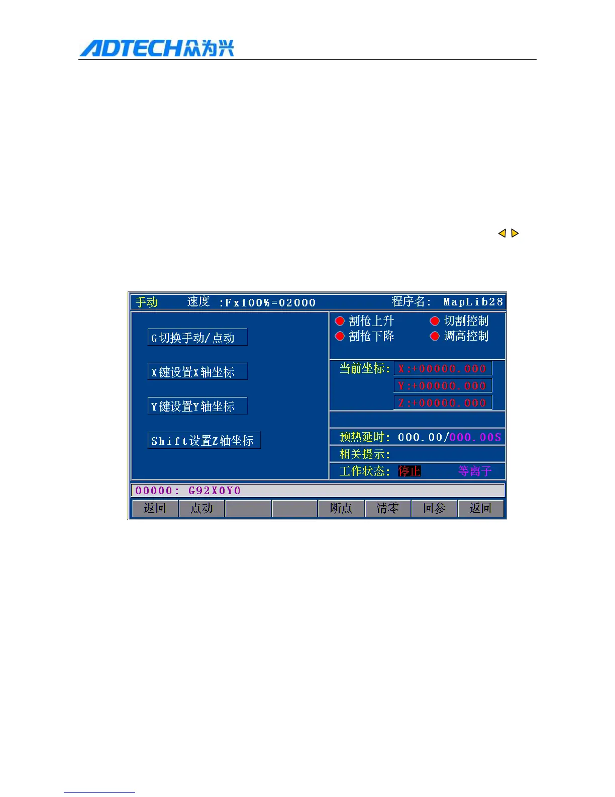 G / G: switch Manual/Jog Torch up / Cutting Control