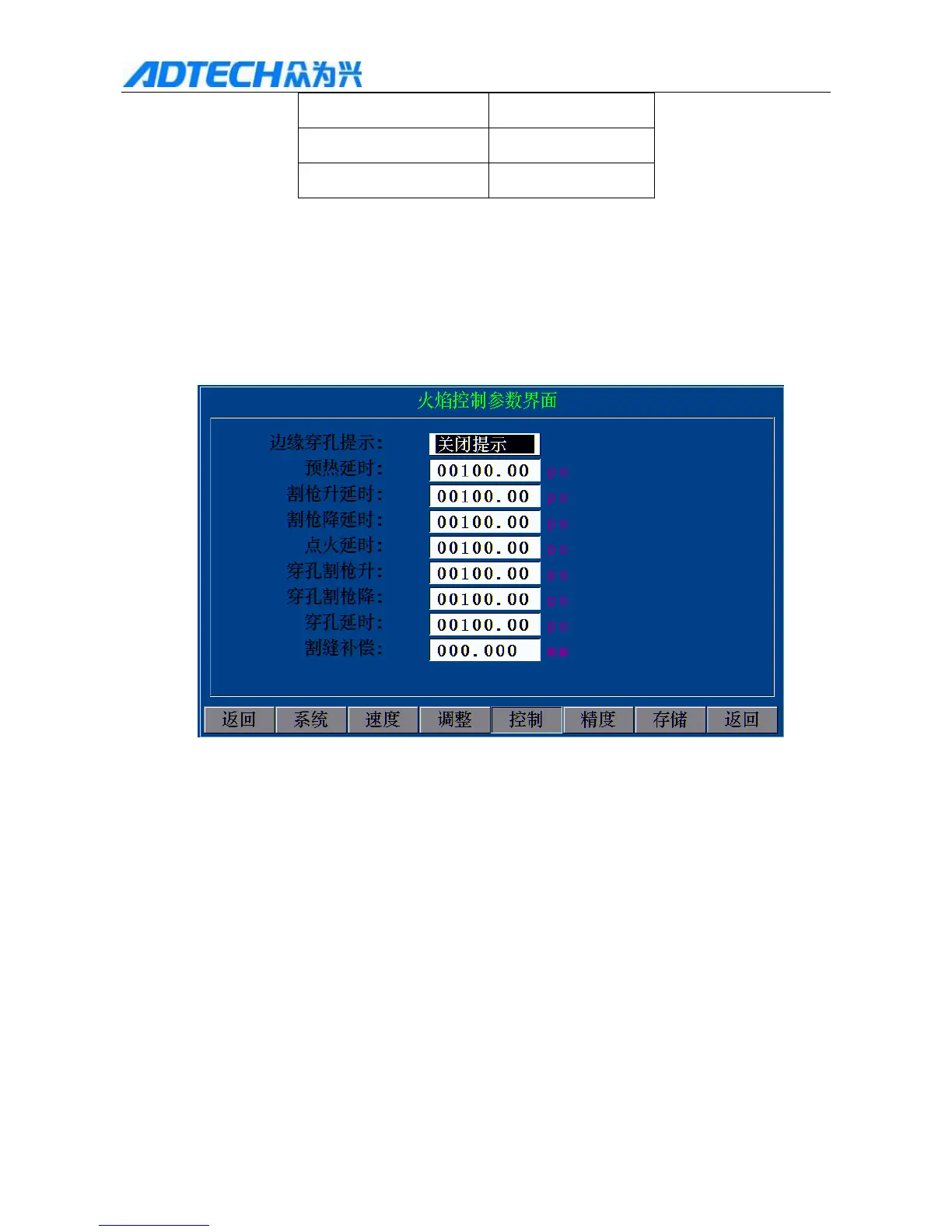In the main menu interface, press [F4] (Parameter) [F4] (Control), and set the “Preheating delay” in the